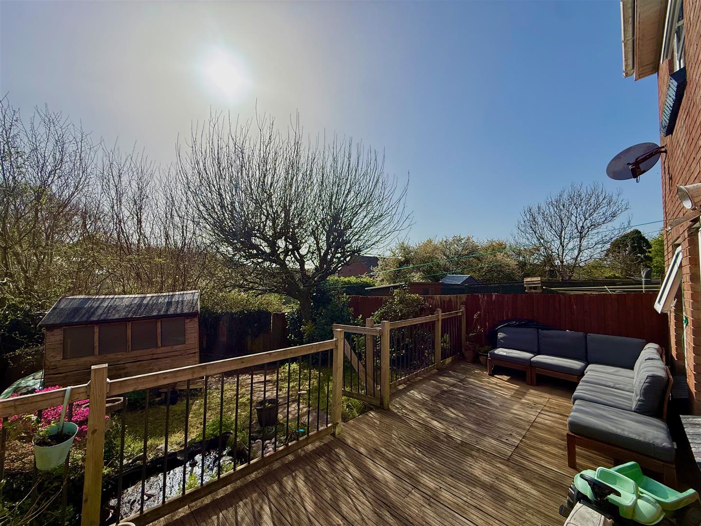 The front garden is laid to lawn with bordering shrub and flower beds and enclosed by timber fencing. Outside storage cupboard. Outside tap. The rear garden, which enjoys a south-westerly aspect, is laid to lawn together with mature shrubs and a mature apple tree. There is a timber decking area stretching the full width of the property.