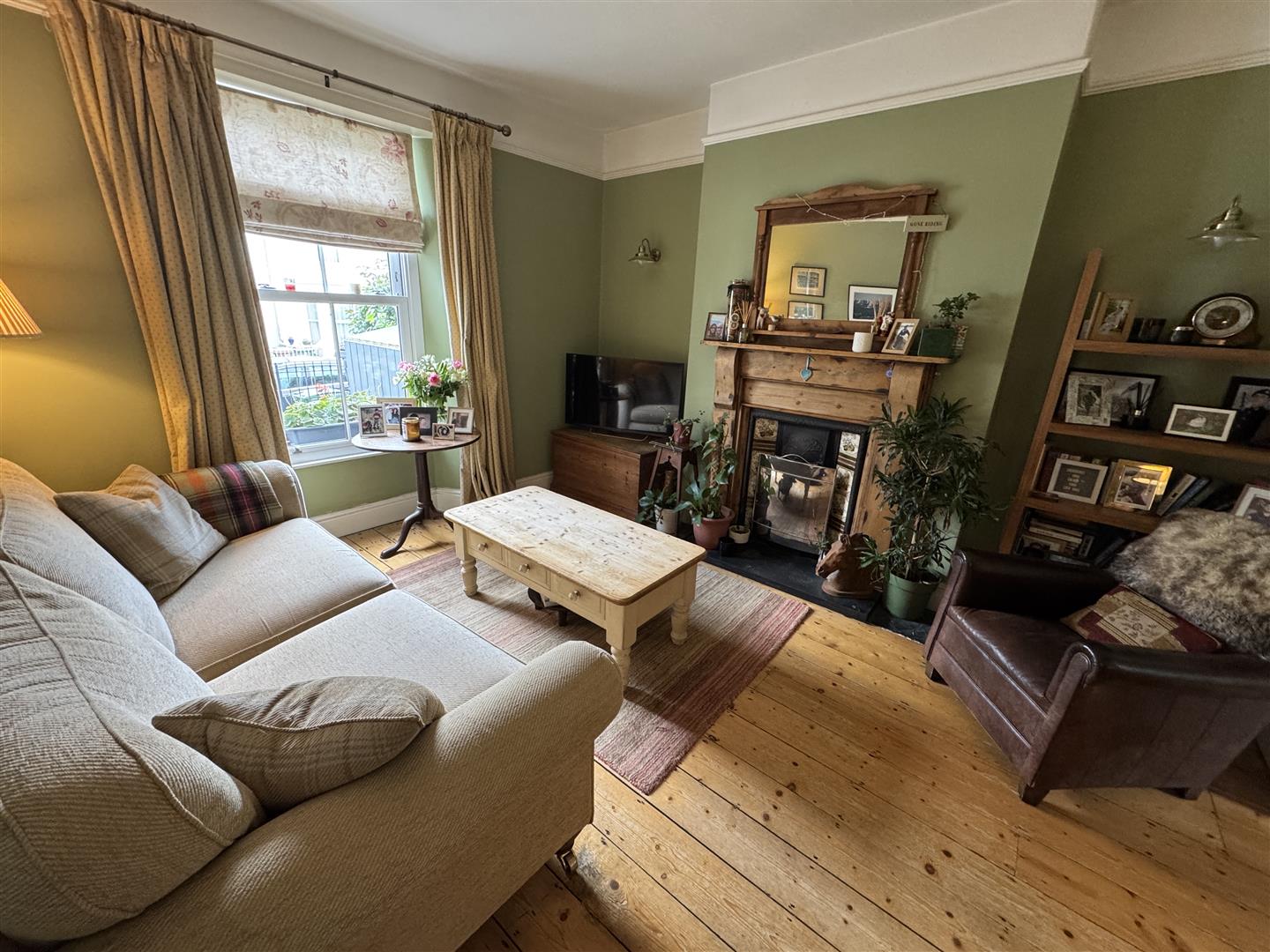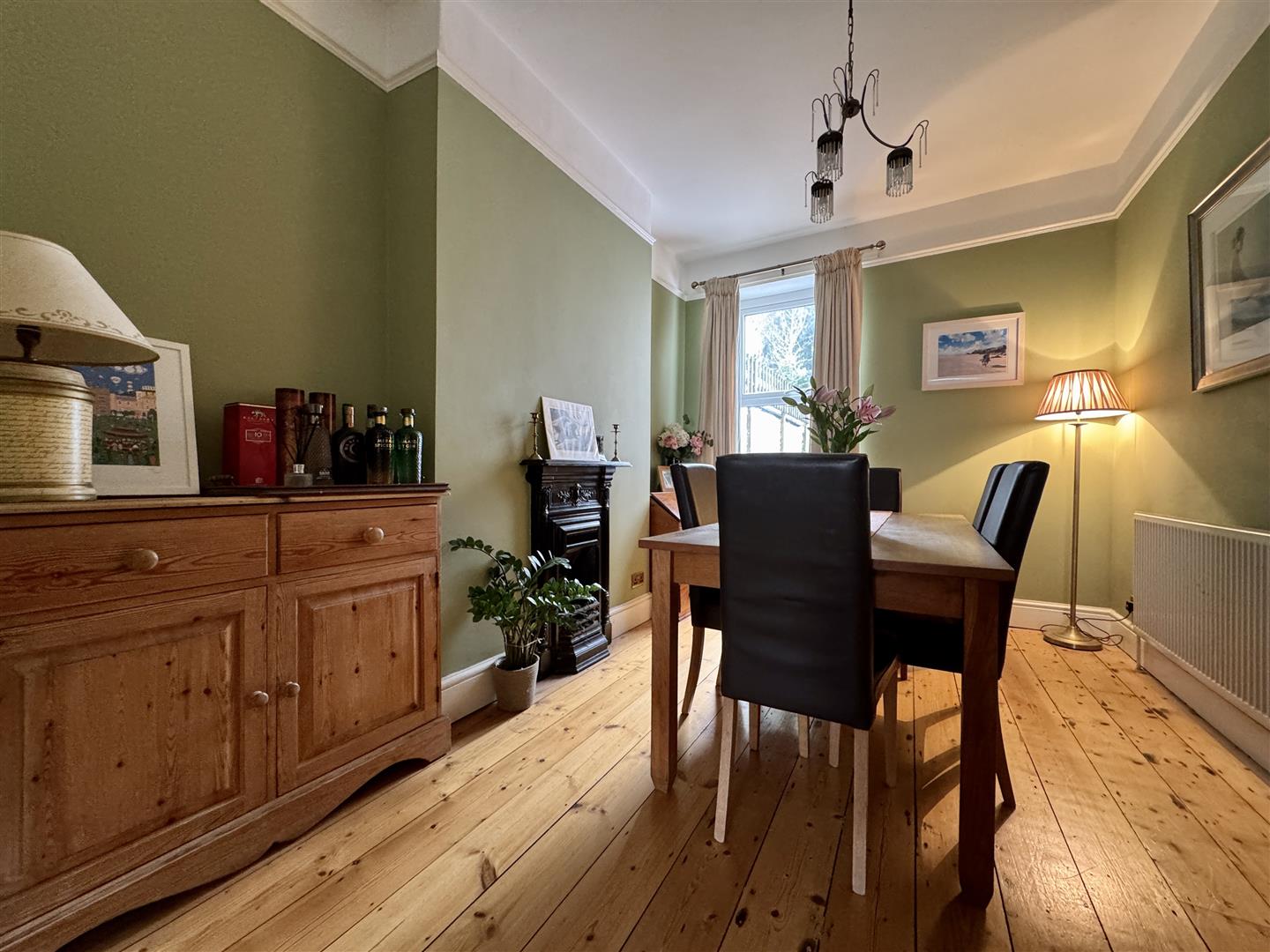 Feature fireplace with wood mantle & surround with cast iron inset, decorative tiles & living flame gas fire. Exposed wooden floorboards. Ceiling rose. Picture rail. uPVC double-glazed sash style window to the front. Square arch opening into the dining room.