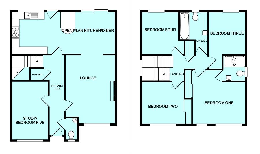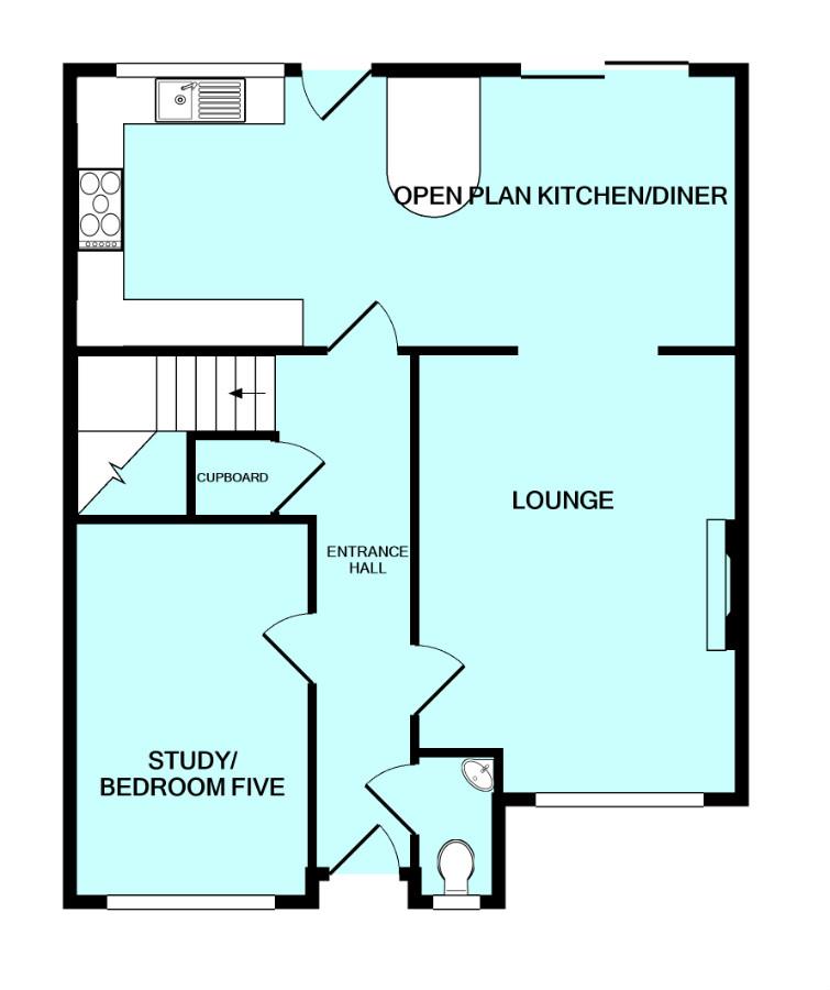 Laminate wood flooring. Doors opening into the cloakroom, study, lounge, under-stairs storage cupboard and the kitchen. Stairs ascending to the first floor.