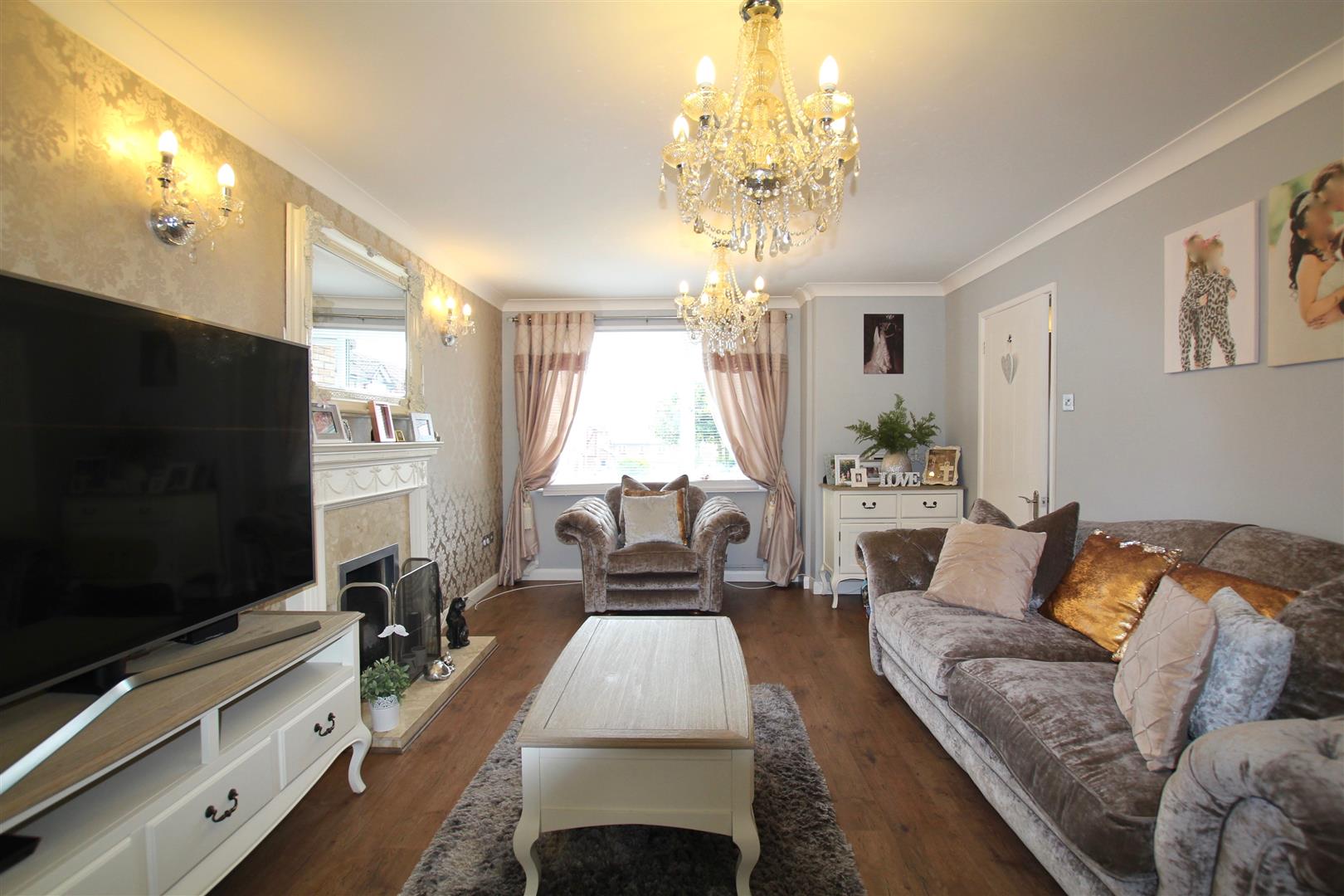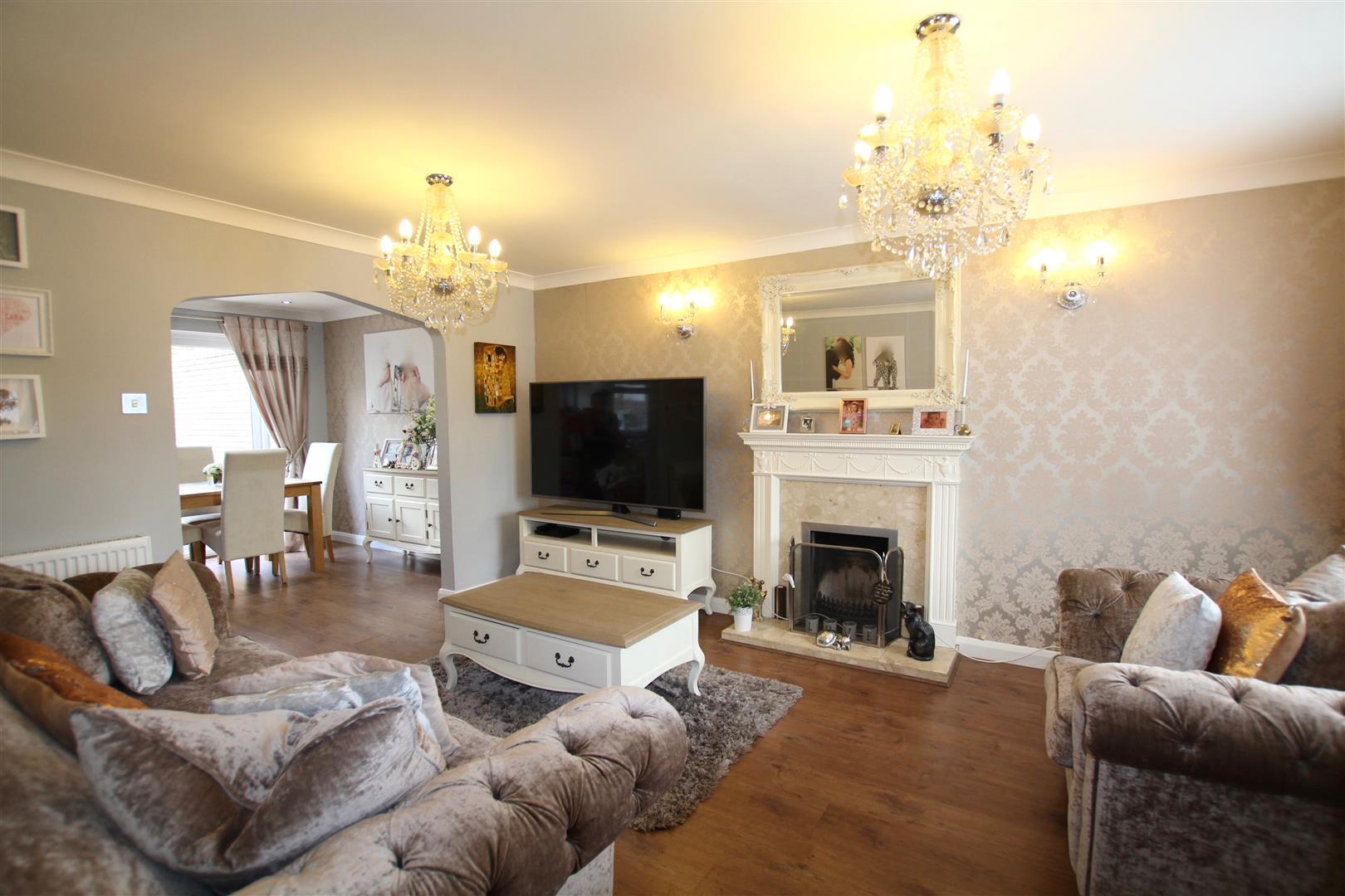 A light and airy room with feature fireplace with wood mantel and surround. Marble inset with an open grate. uPVC double-glazed window to front elevation. Laminate wood flooring. Archway opening into the open plan kitchen/diner.