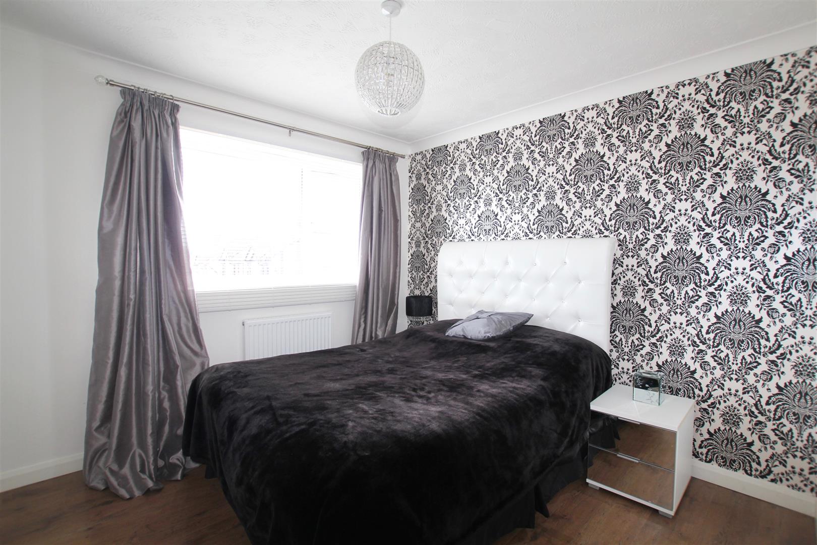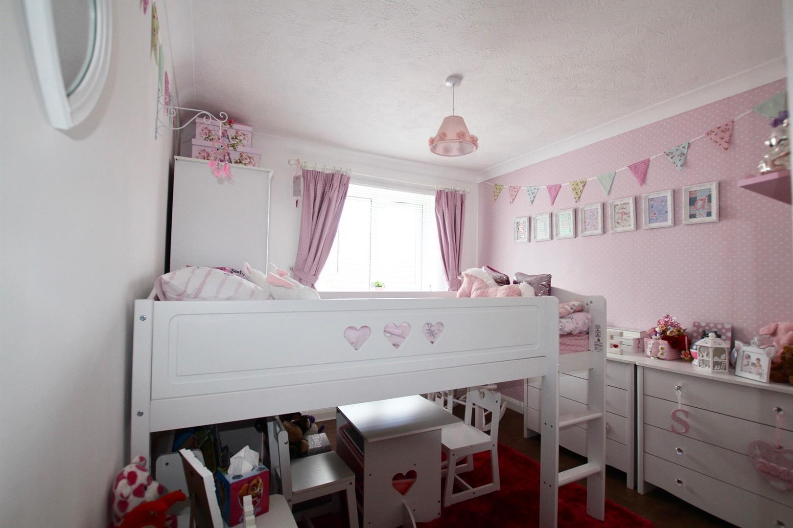 Fitted wardrobes along one section of the wall with mirrored doors, shelving and hanging rail. uPVC double-glazed window to front elevation. Laminate wood flooring.