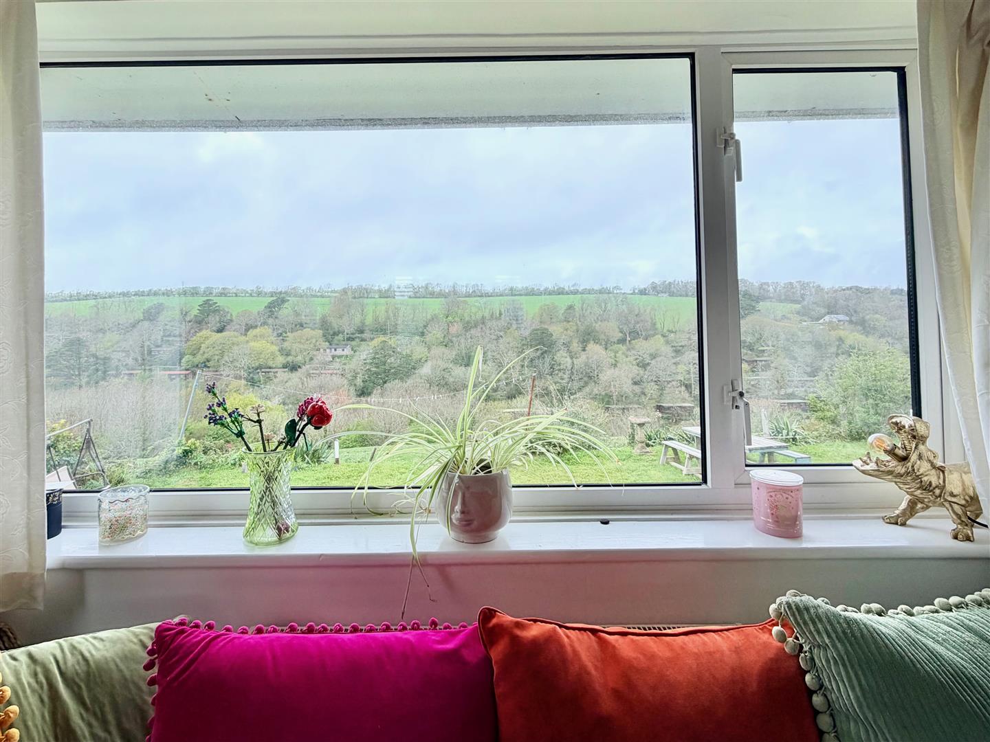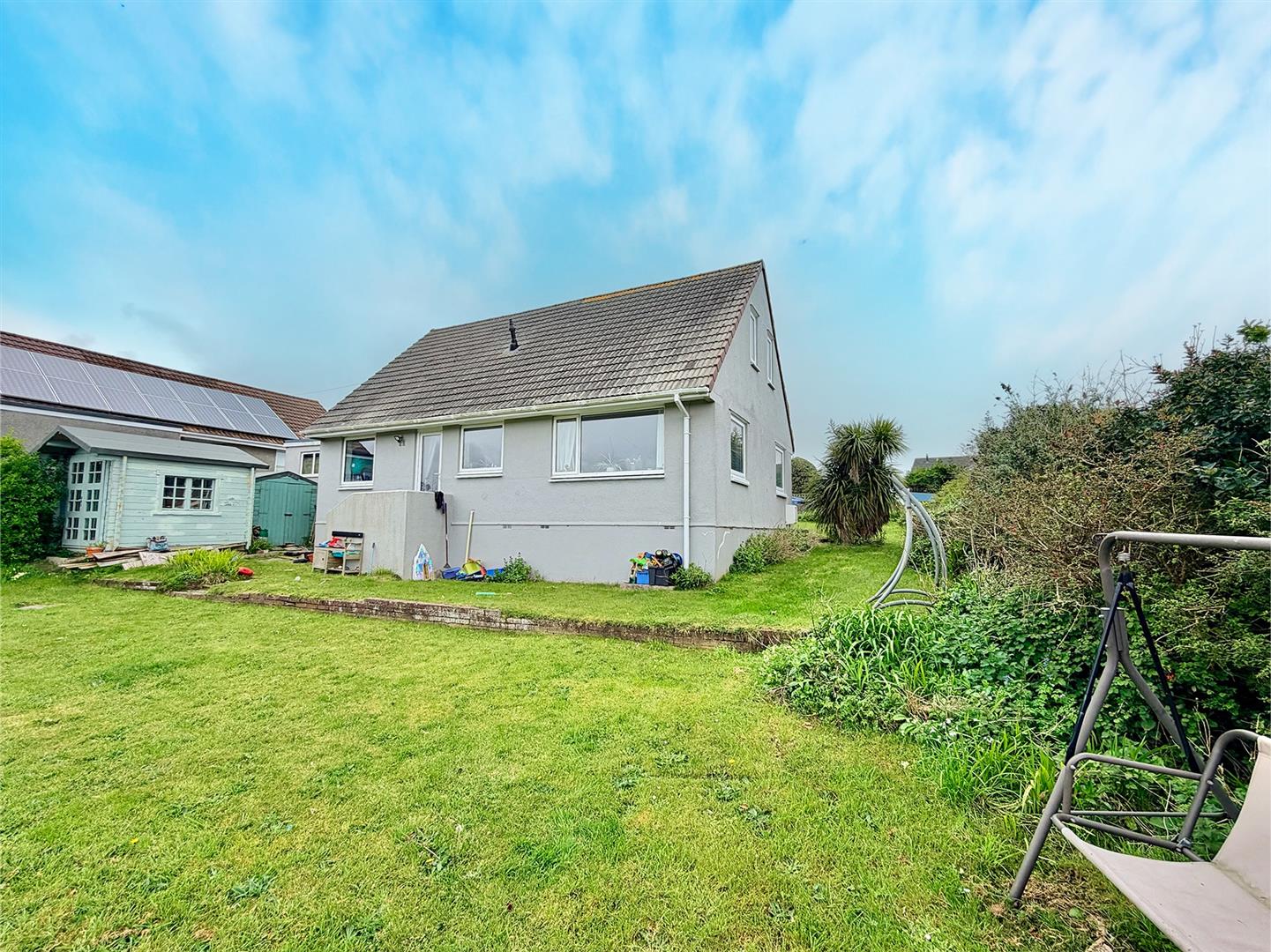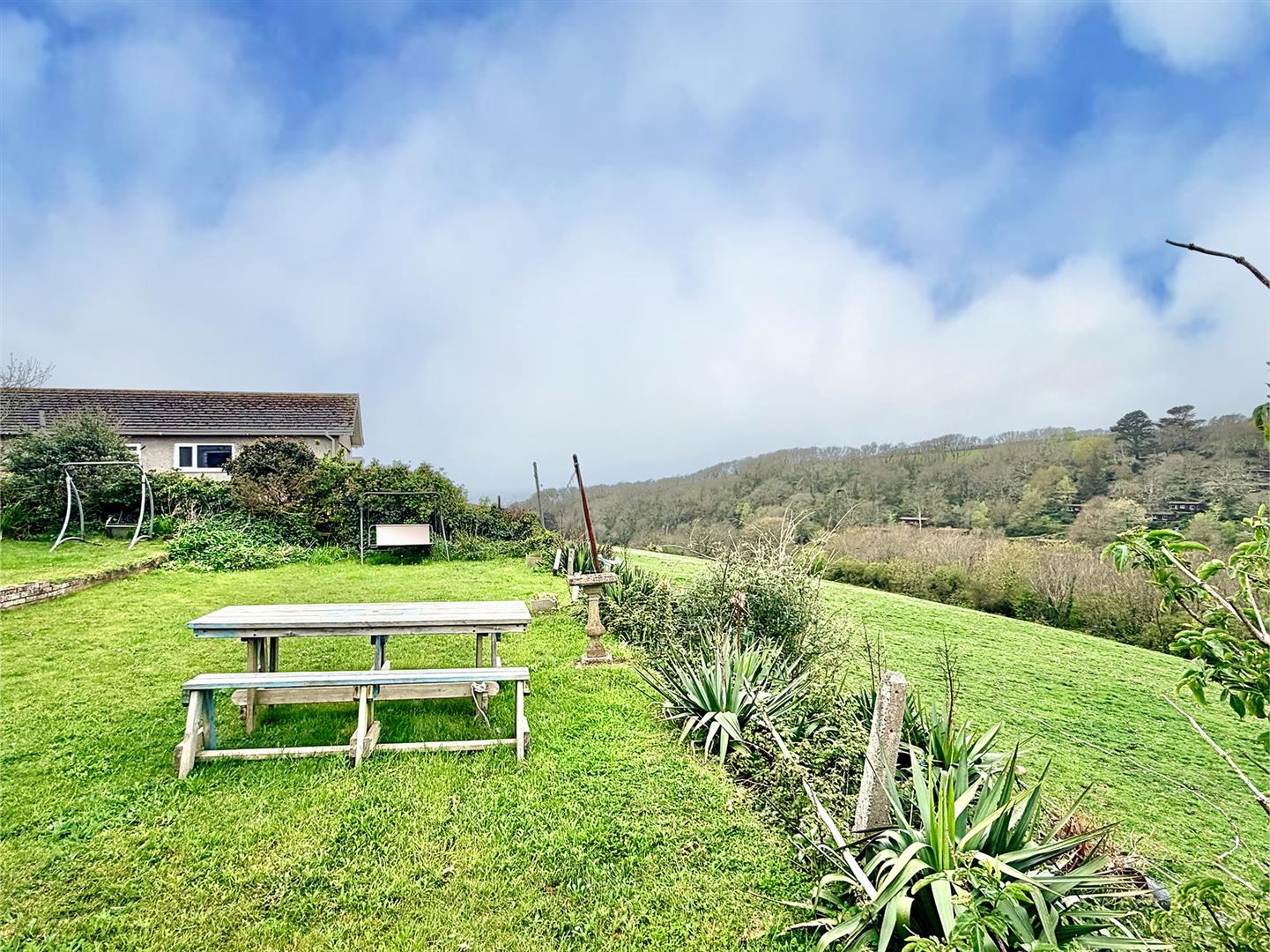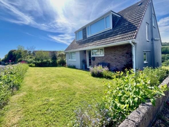 A gravel driveway provides access to the garage/store. The front garden is laid to lawn and shrubs. There is access around both side elevations of the property. The rear garden is laid to lawn and there are fantastic valley/countryside views as well as views to the sea.
