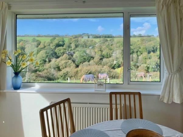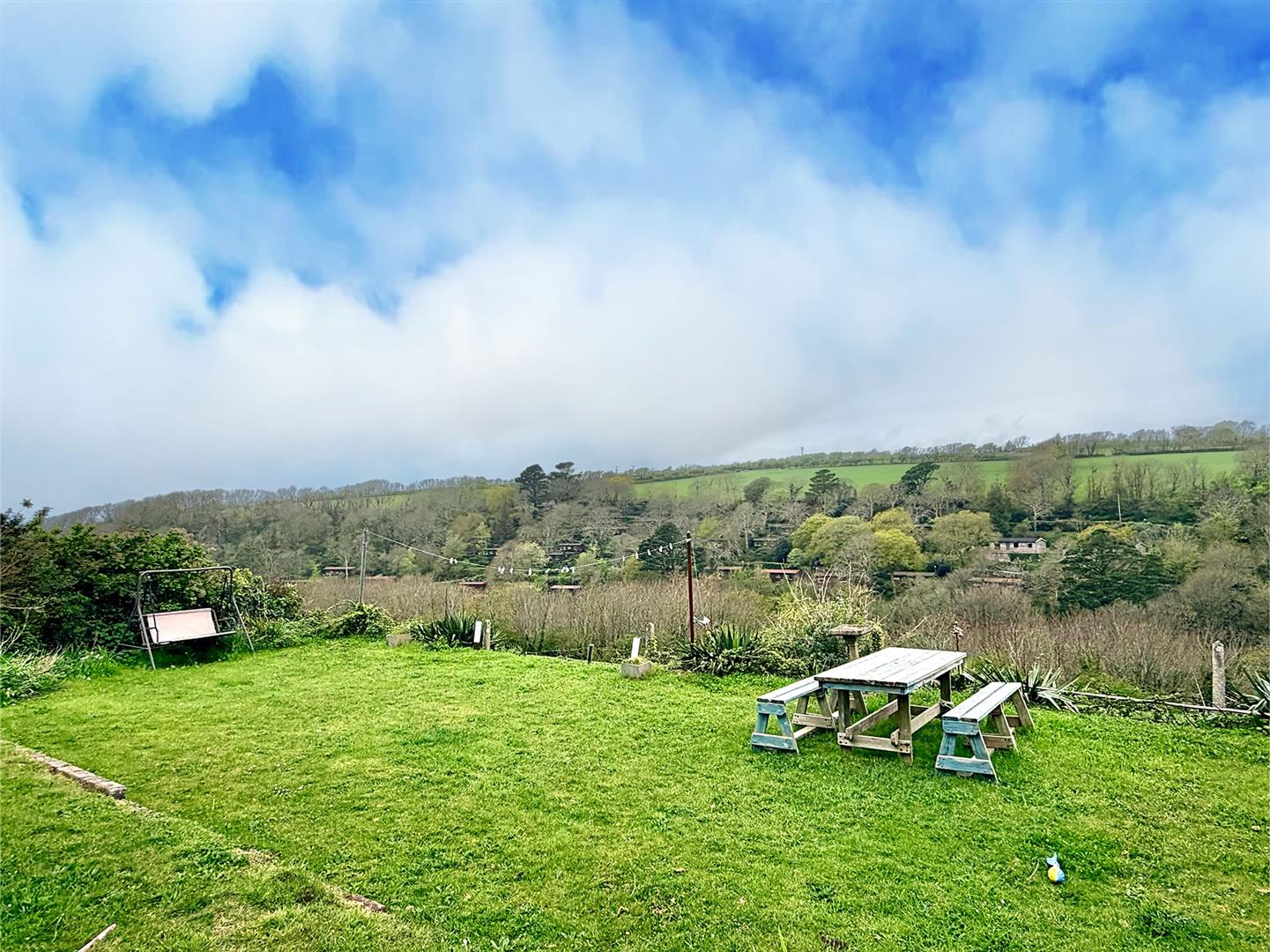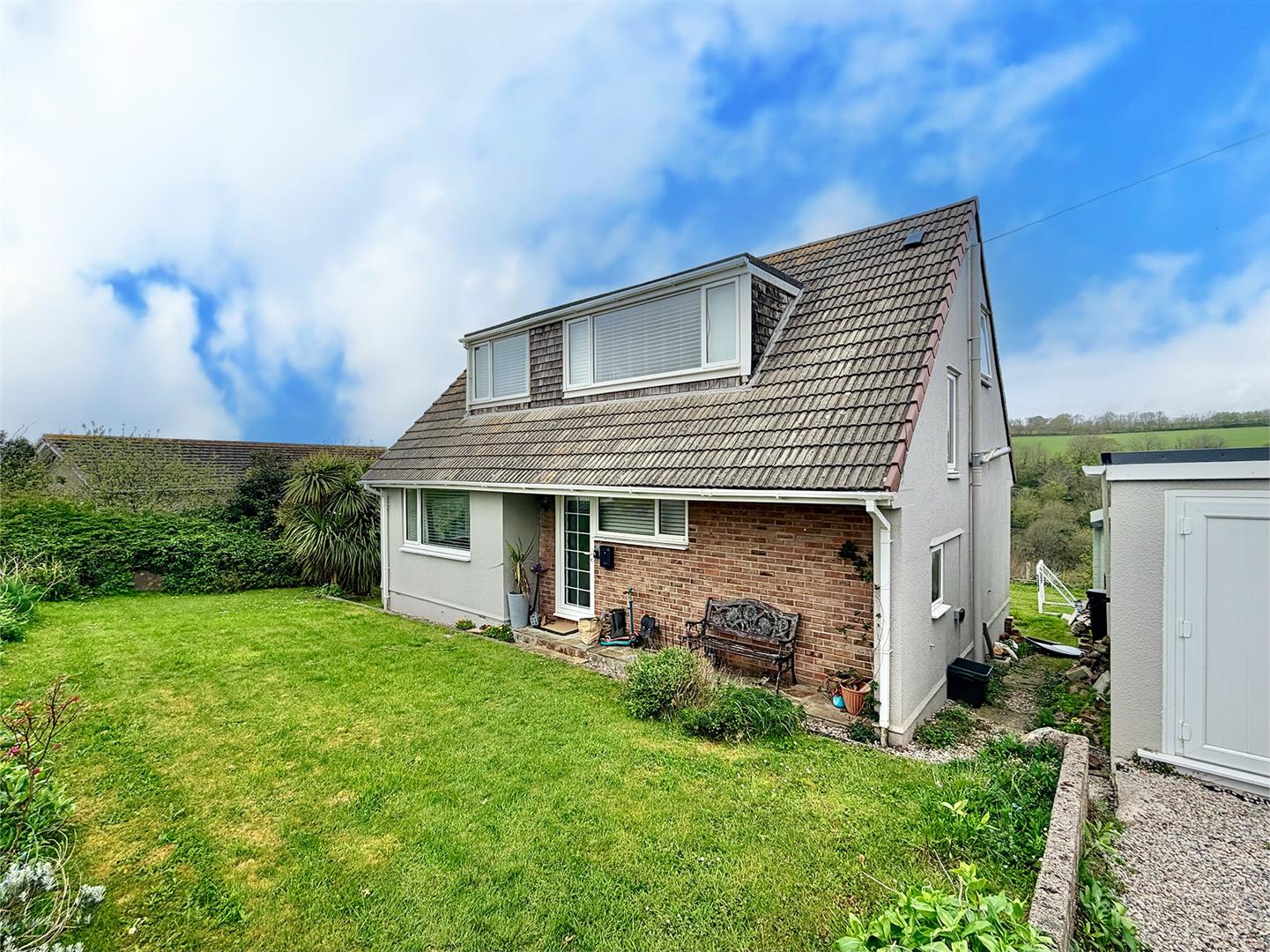 A gravel driveway provides access to the garage/store. The front garden is laid to lawn and shrubs. There is access around both side elevations of the property. The rear garden is laid to lawn and there are fantastic valley/countryside views as well as views to the sea.