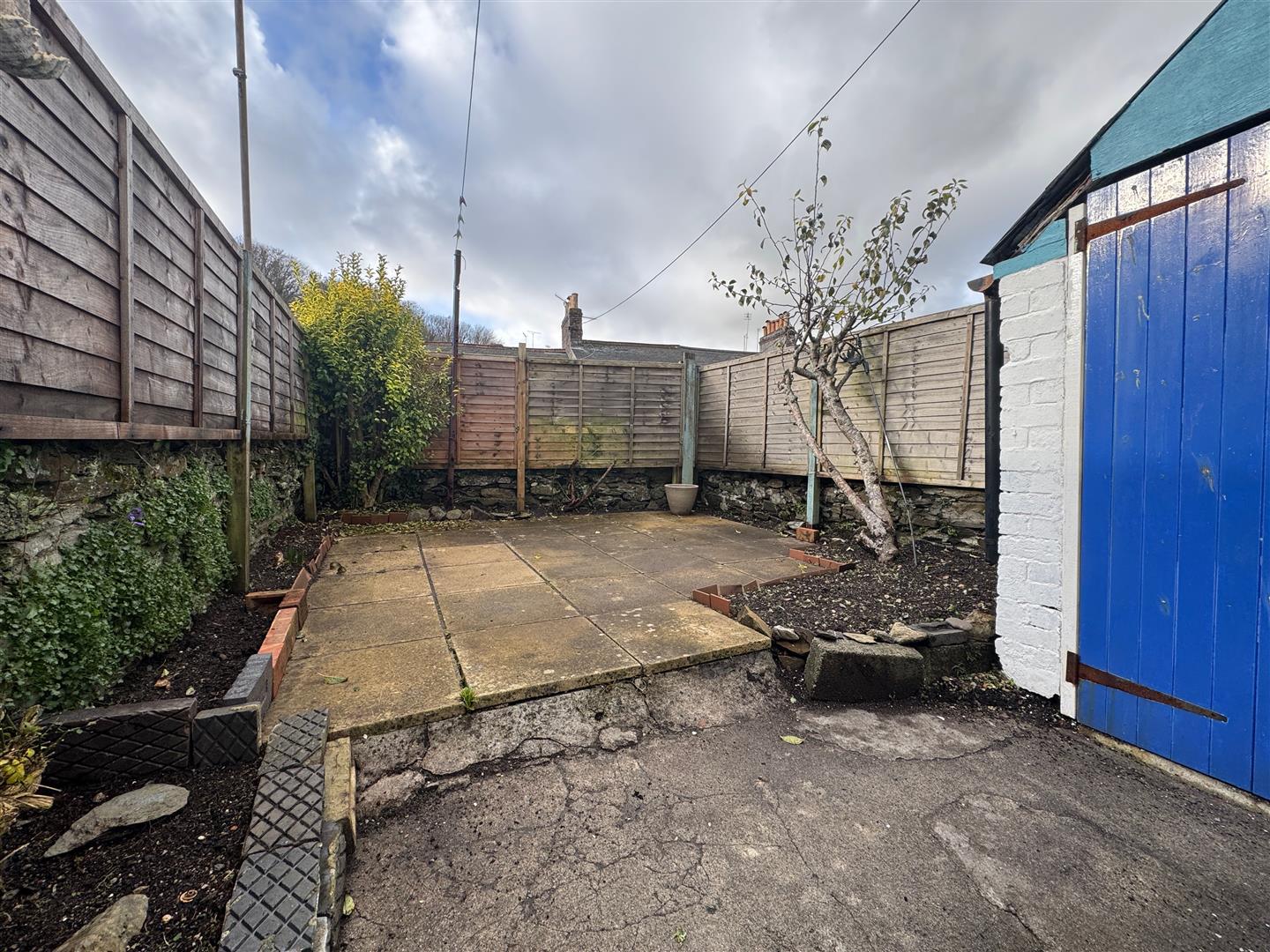 To the rear an enclosed south-westerly facing garden which consists of a paved patio seating area with a flower bed & shrub border running along the boundaries. Door to an outside purpose built storage shed.