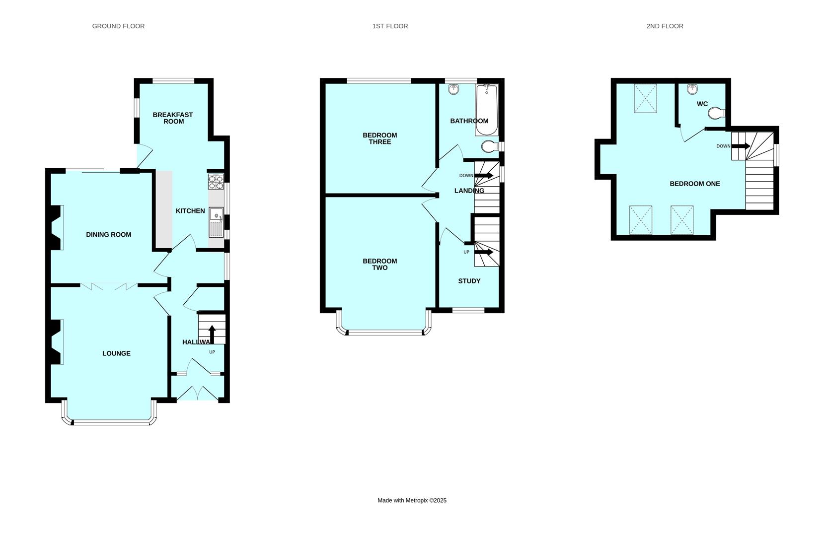 Dado rail. uPVC double-glazed window to the side. Doors leading to bedroom 2, 3, bathroom & study.