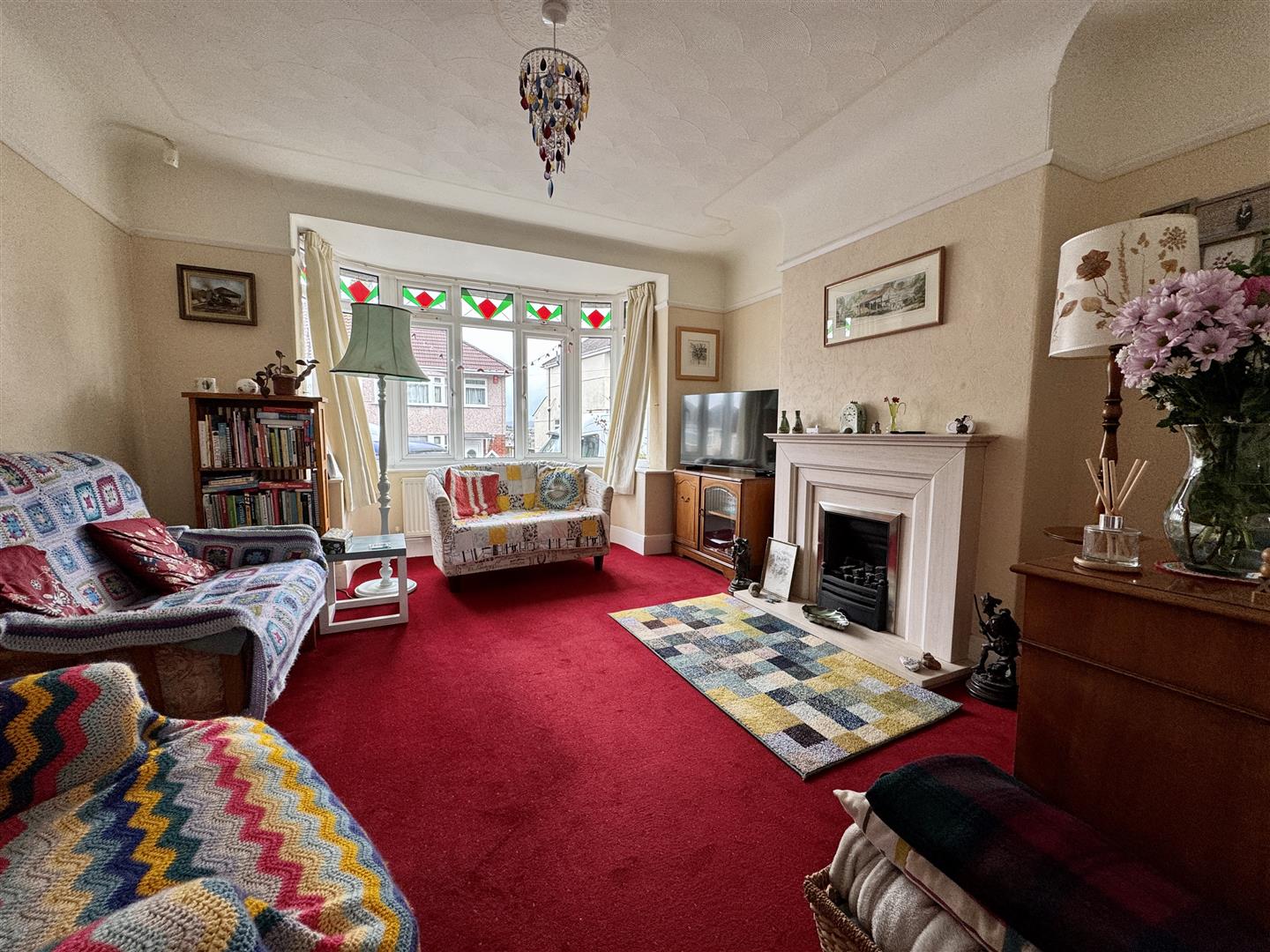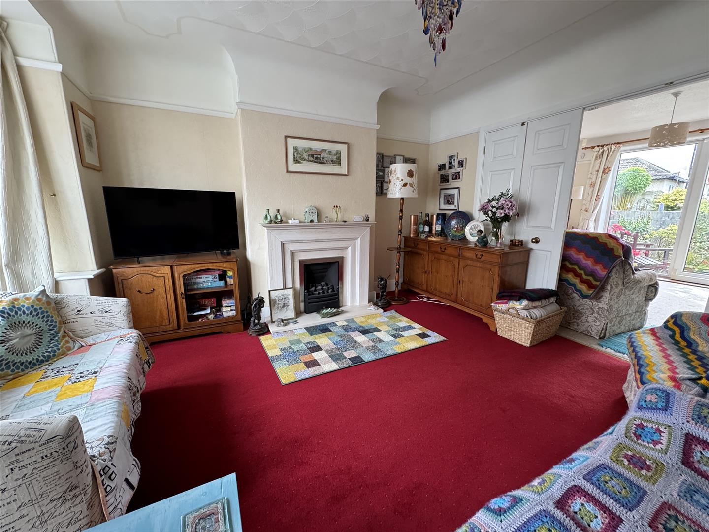 Feature stone fireplace with surround & hearth, inset living flame gas fire. uPVC double-glazed curved bay window to the front. Picture rail. Bi-fold wooden doors open into the dining room.