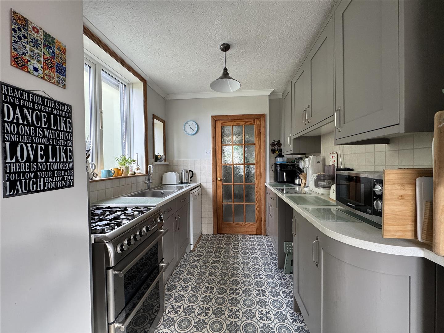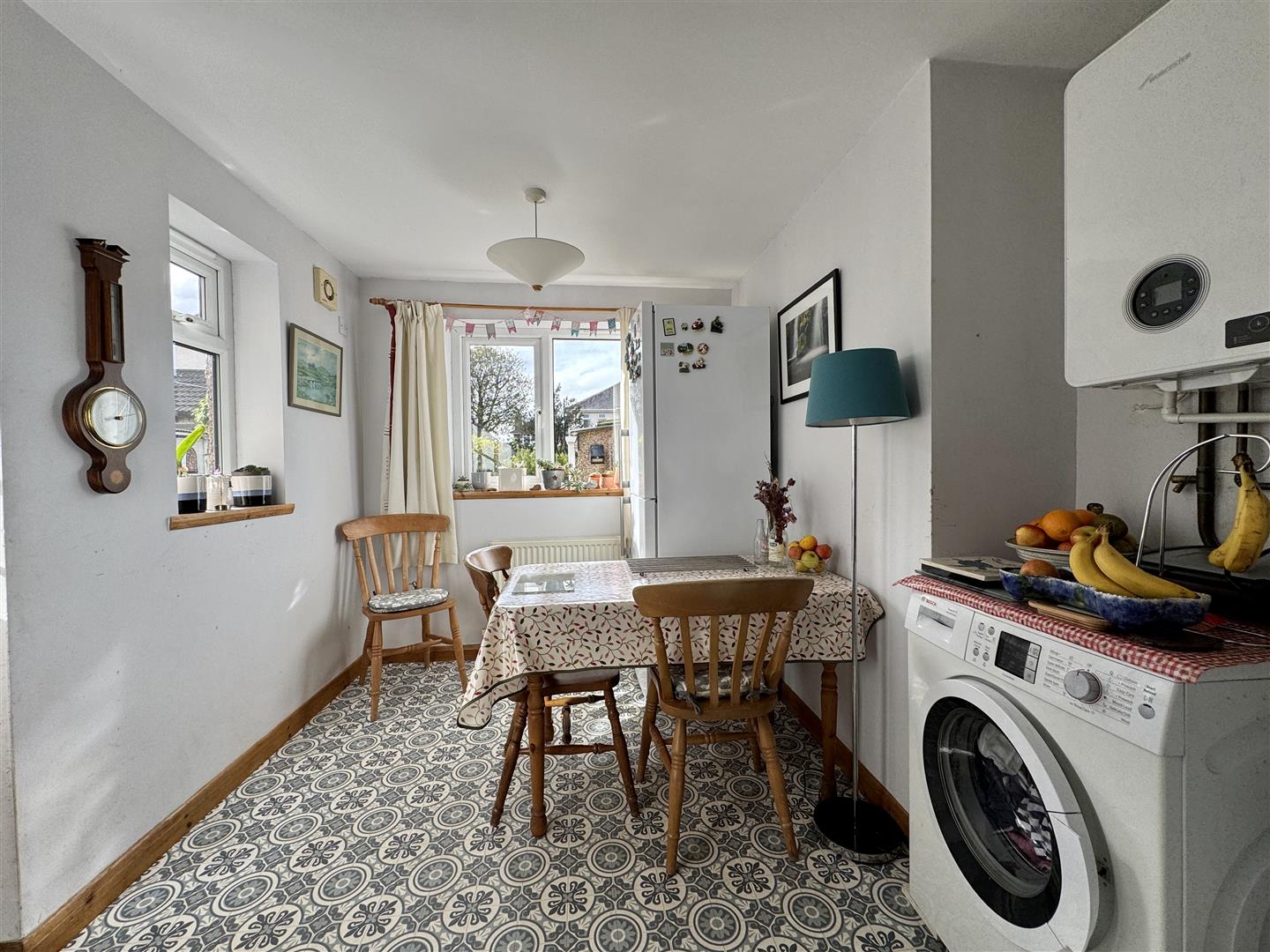 Wall mounted Worcester boiler. Position for a washing machine. Space for an upright fridge/freezer. Ample space for a dining table. Dual aspect with uPVC double-glazed window to the rear & side. uPVC double-glazed door opens to the rear garden. Tiled effect vinyl flooring.