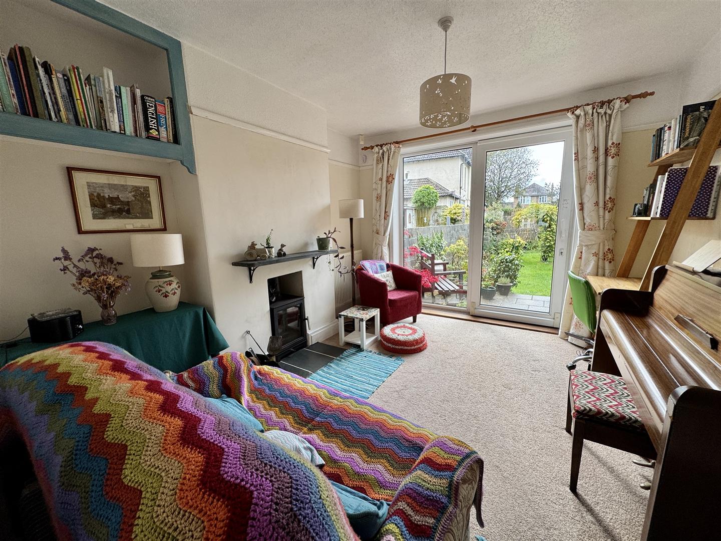 Feature fireplace with wood burner inset into chimney breast. Sliding uPVC double-glazed patio door opens to the rear garden. Picture rail.