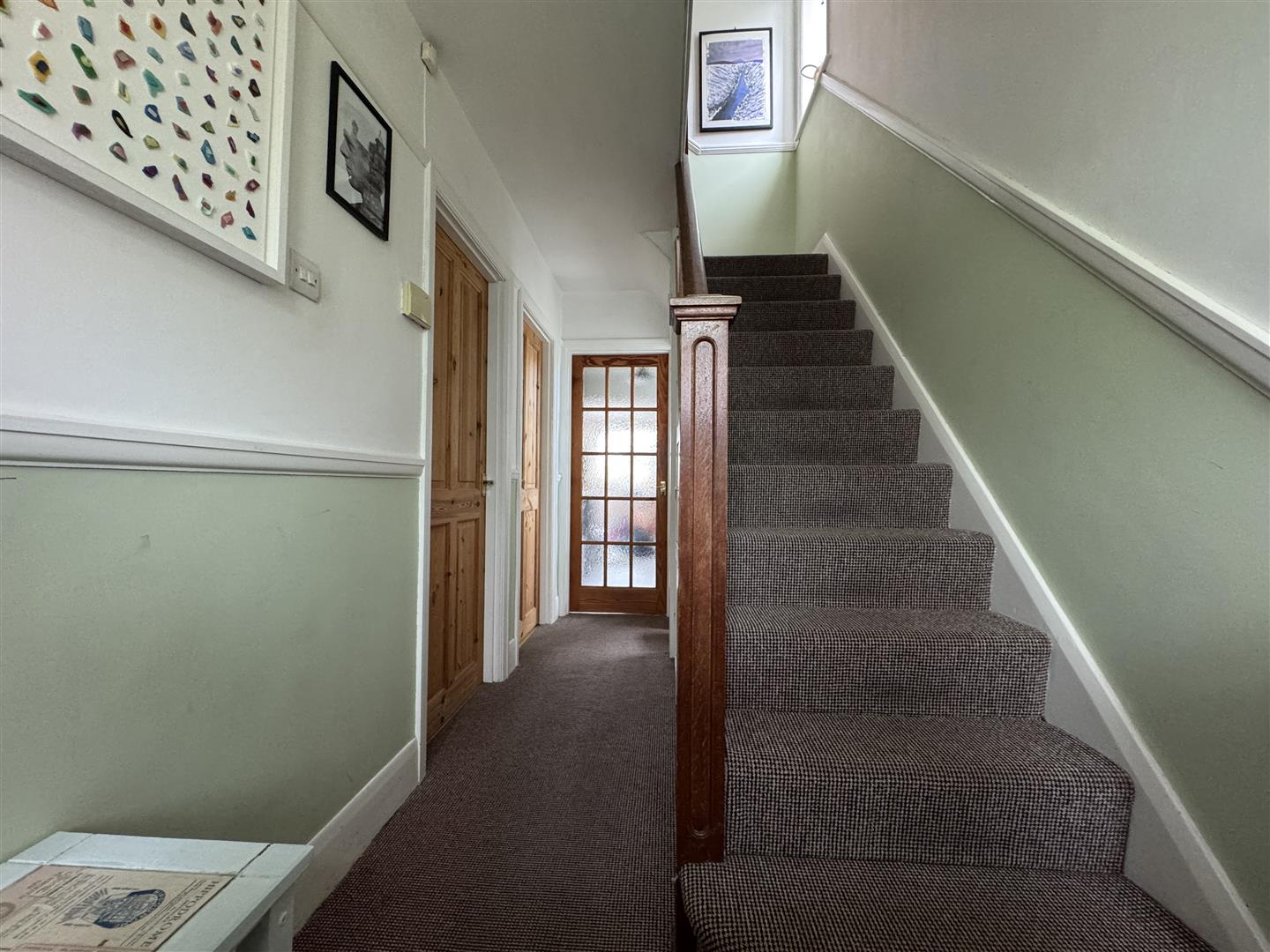 Dado rail. Staircase rising to the first floor landing with under-stairs storage cupboards & open recess. Doors lead to the lounge, dining room & kitchen. uPVC double-glazed window to the side.