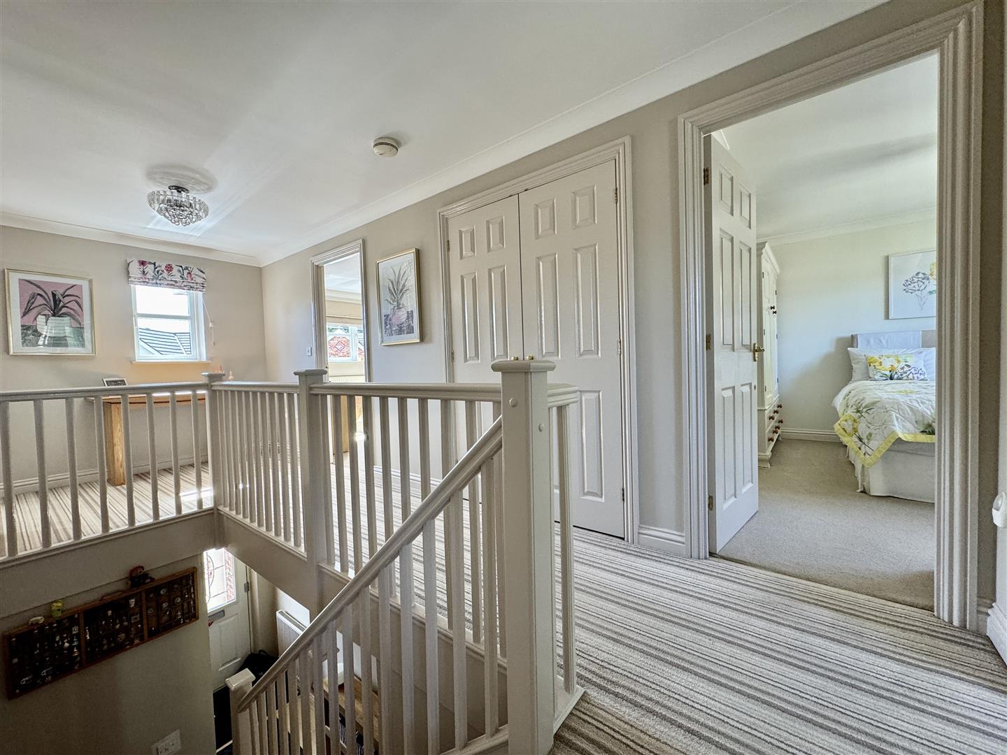 Access hatch to roof void. Space for an office desk. Doors leading to the bedrooms, bathroom & twin door to the airing cupboard, which houses the Megaflo tank with pressured cylinder & shelving.