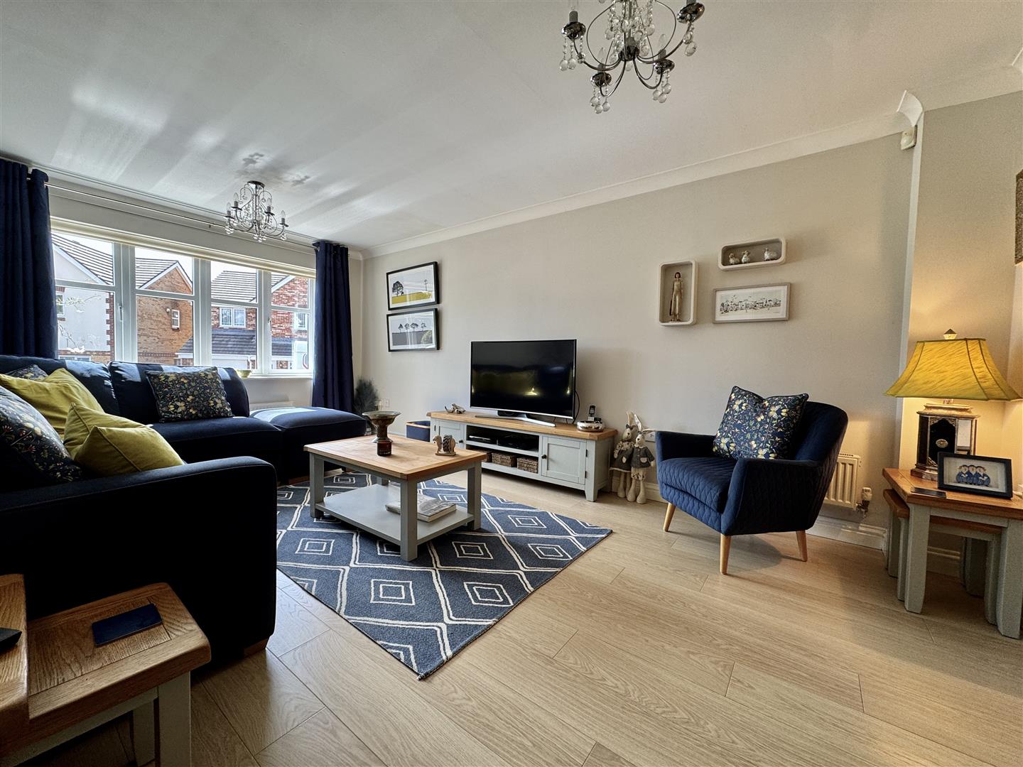 uPVC double-glazed window to the front. Oak effect laminate wood flooring. Twin wooden doors with glazed panels opens into the open-plan kitchen diner/ family room.