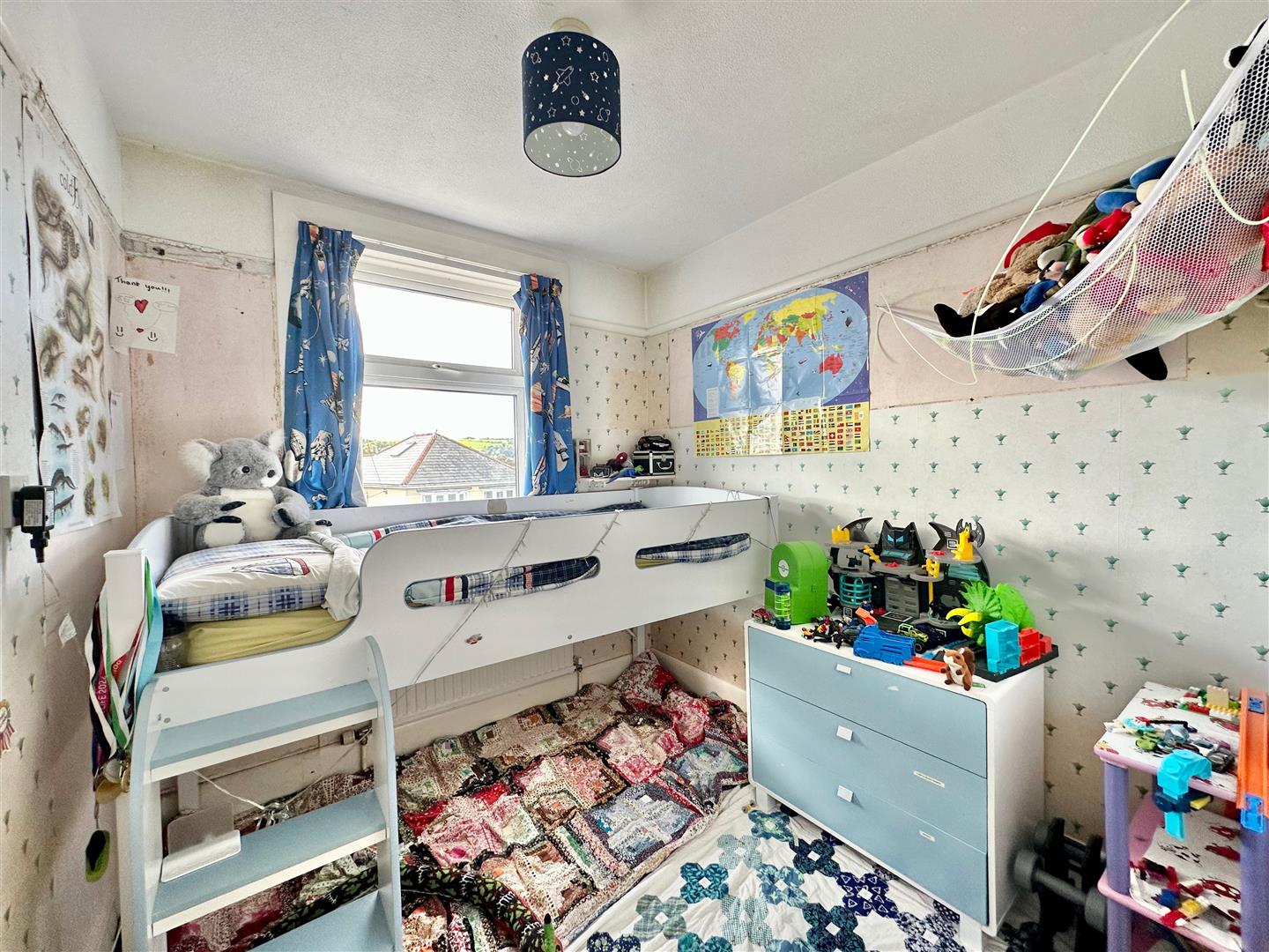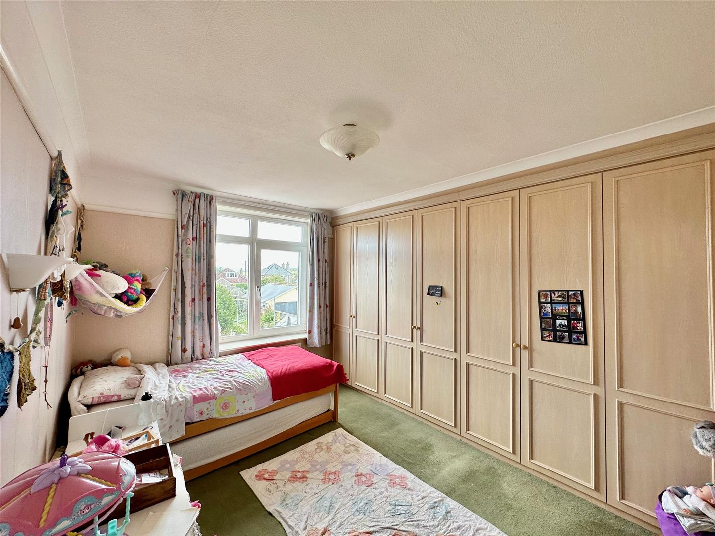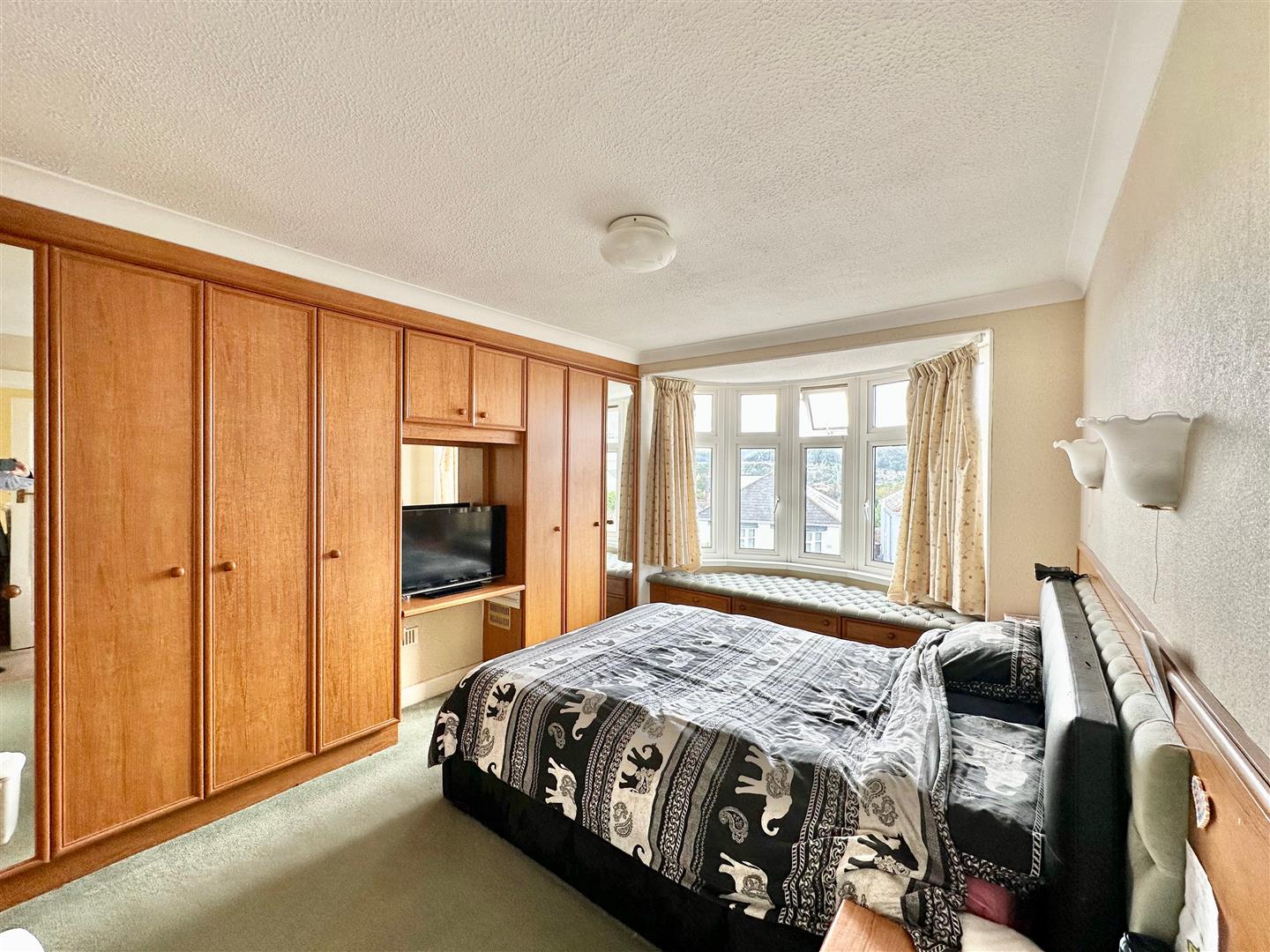 Bay window to the front elevation with a window seat incorporating drawer storage. Lovely views from the bay window towards Burrow Hill and around to Staddon Heights. Range of built-in bedroom furniture. Worcester wall-mounted gas boiler concealed by a matching cabinet. Matching headboard and matching bedside cabinets.