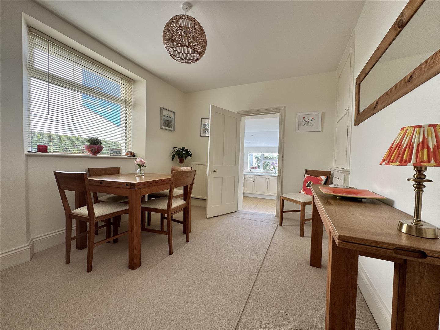 Ample space for a breakfast table. uPVC double-glazed window to the side. Fitted storage cupboards to both chimney breast recesses. Door opening to the kitchen.