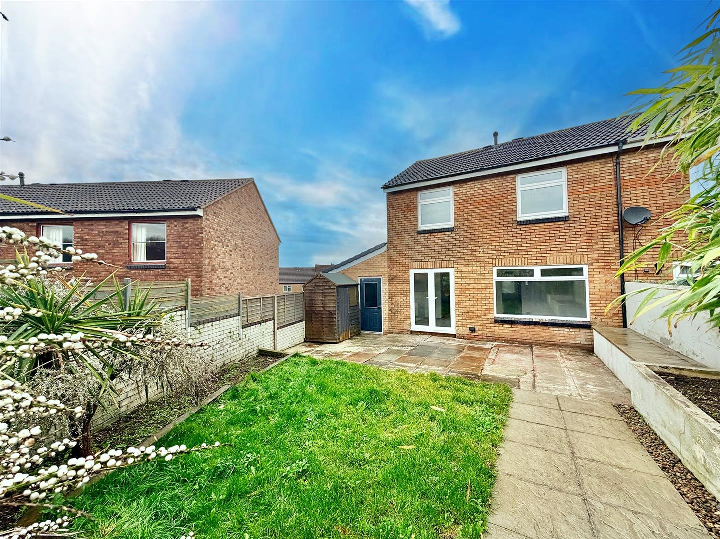 There is a paved terrace outside the front door together with an off-road parking area. A driveway provides further off-road parking and access to the garage. The rear garden, which enjoys a southerly aspect, is laid to lawn and patio. There is a rear access gate.
