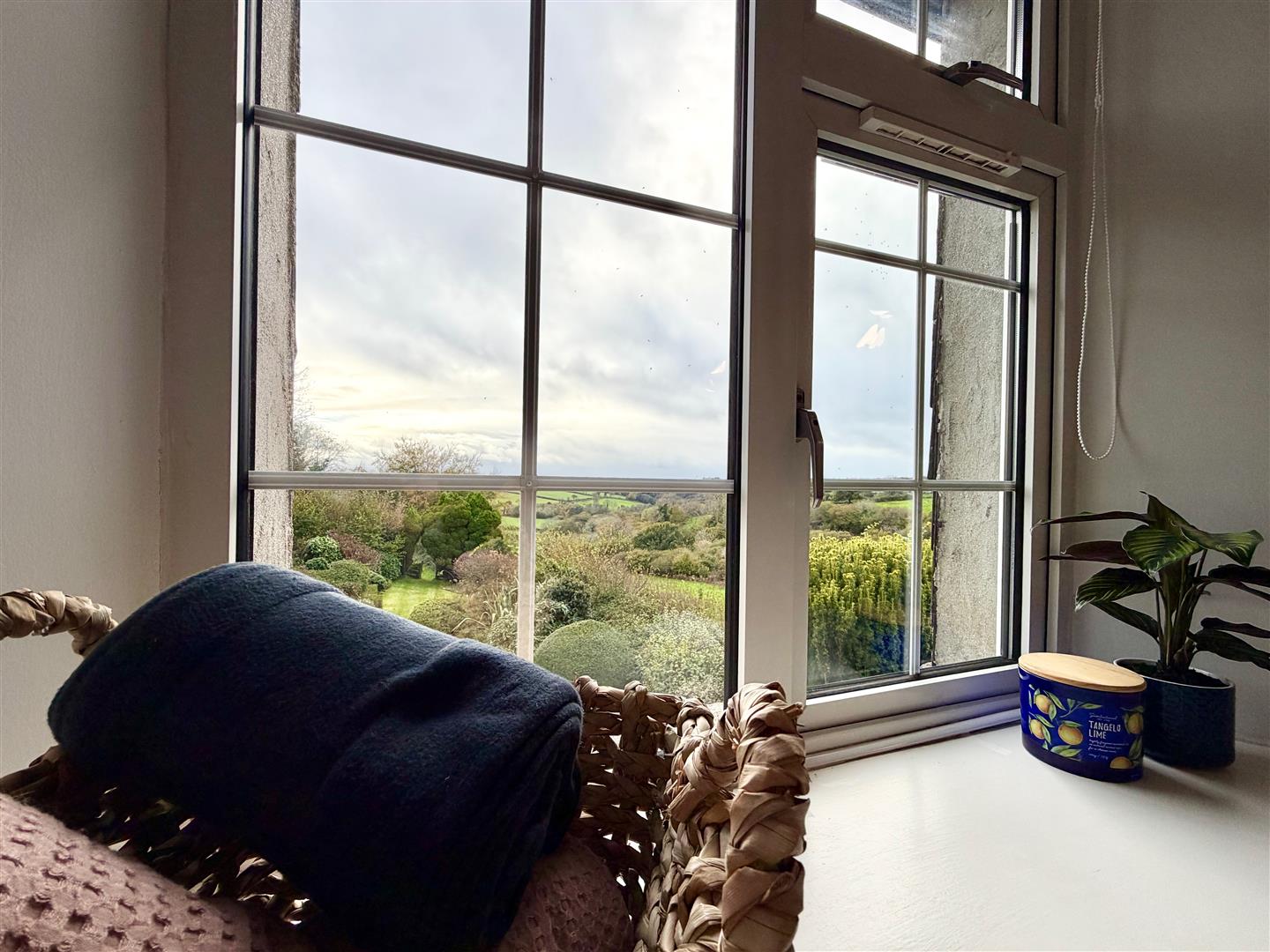 Deep-sill window with far-reaching countryside views.