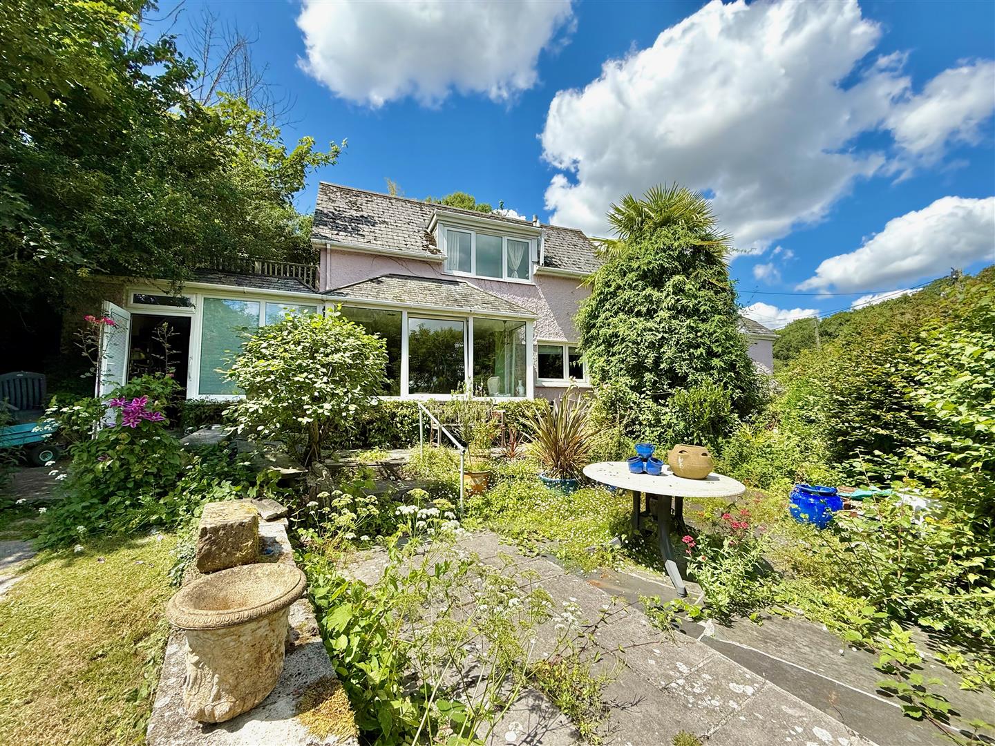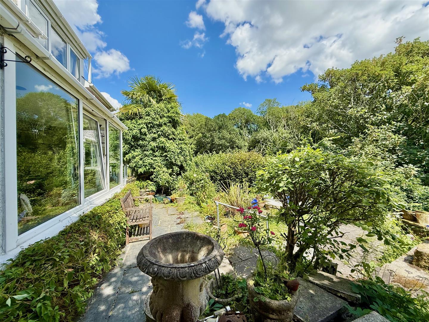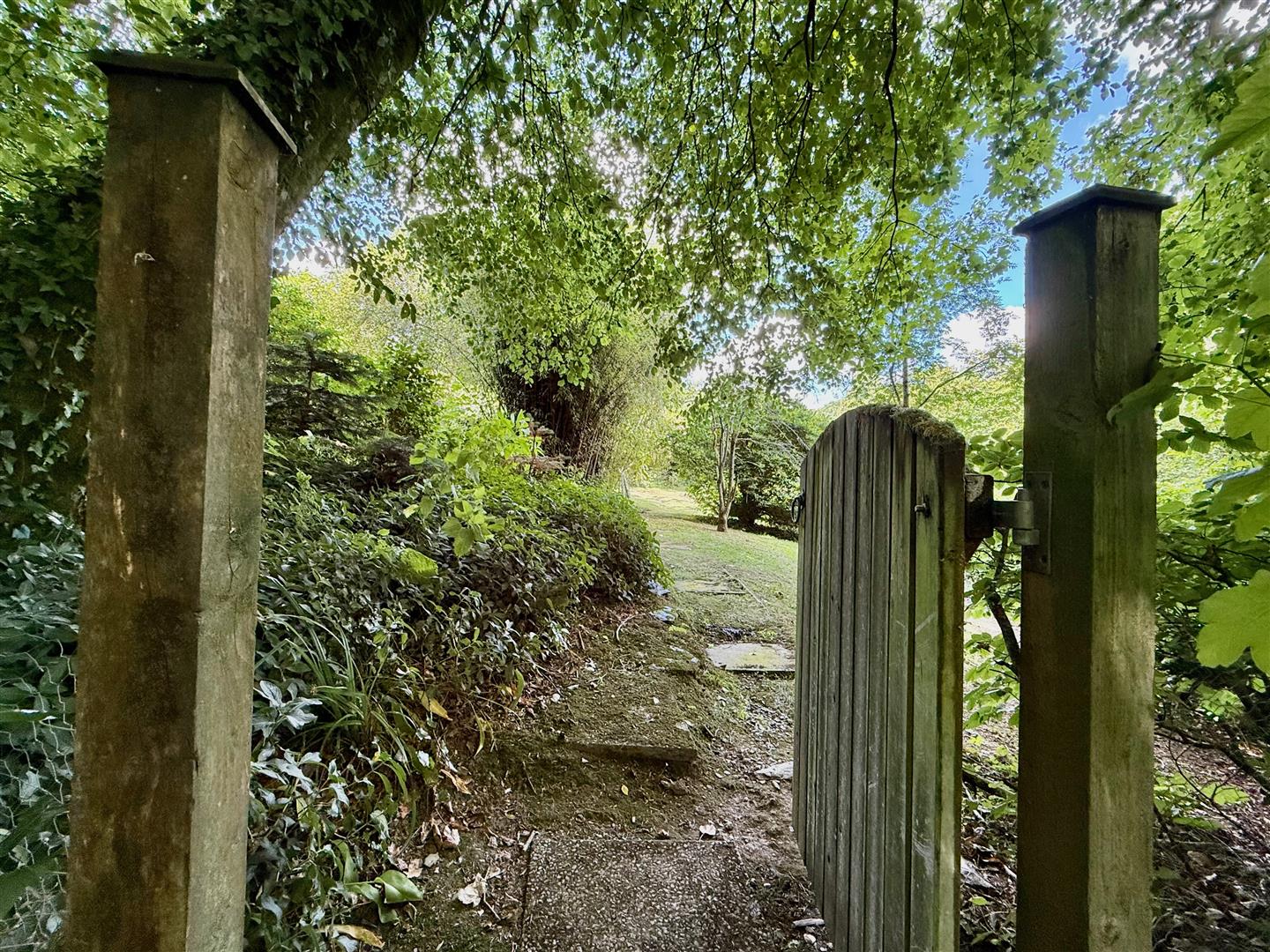 A quintessential cottage garden offering complete privacy and seclusion. The garden is mainly laid to lawn together with mature planting and feature masonry pergolas with mature climbing plants. A small gateway provides access to Cofflette Creek.