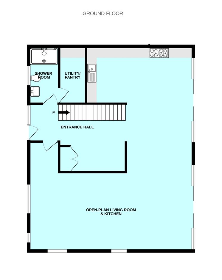 Providing access to the ground floor accommodation. Staircase ascending to the first floor. Polished plywood flooring running throughout the entrance hall and continues into the open-plan living room and kitchen. Cupboard housing the gas boiler.