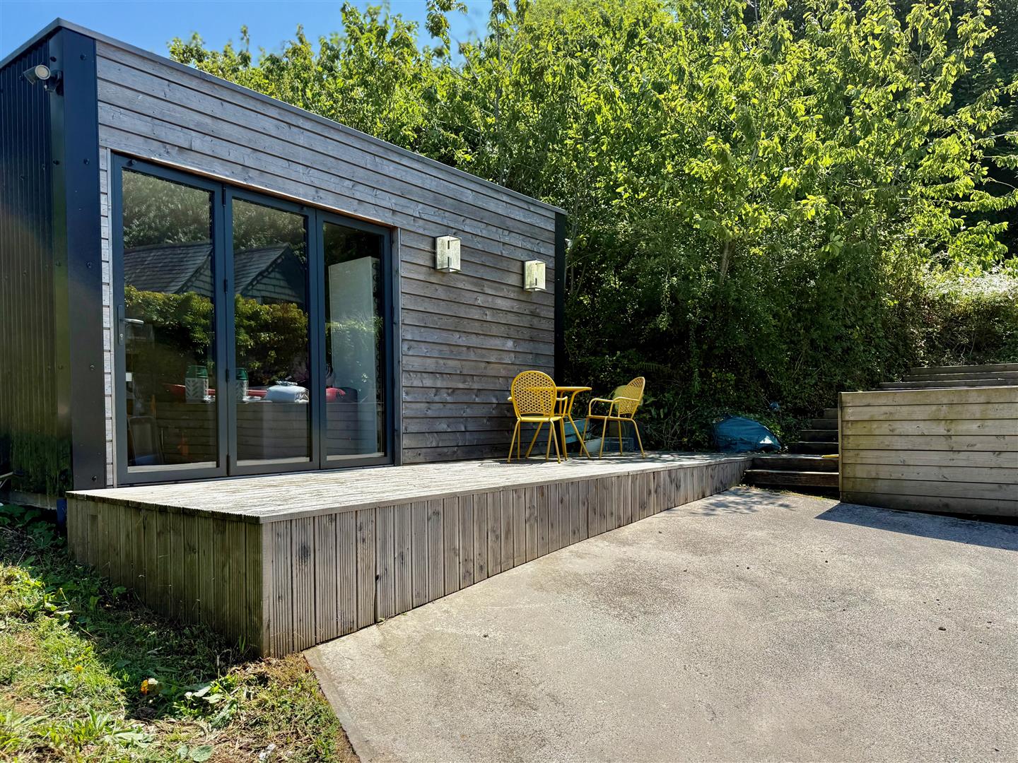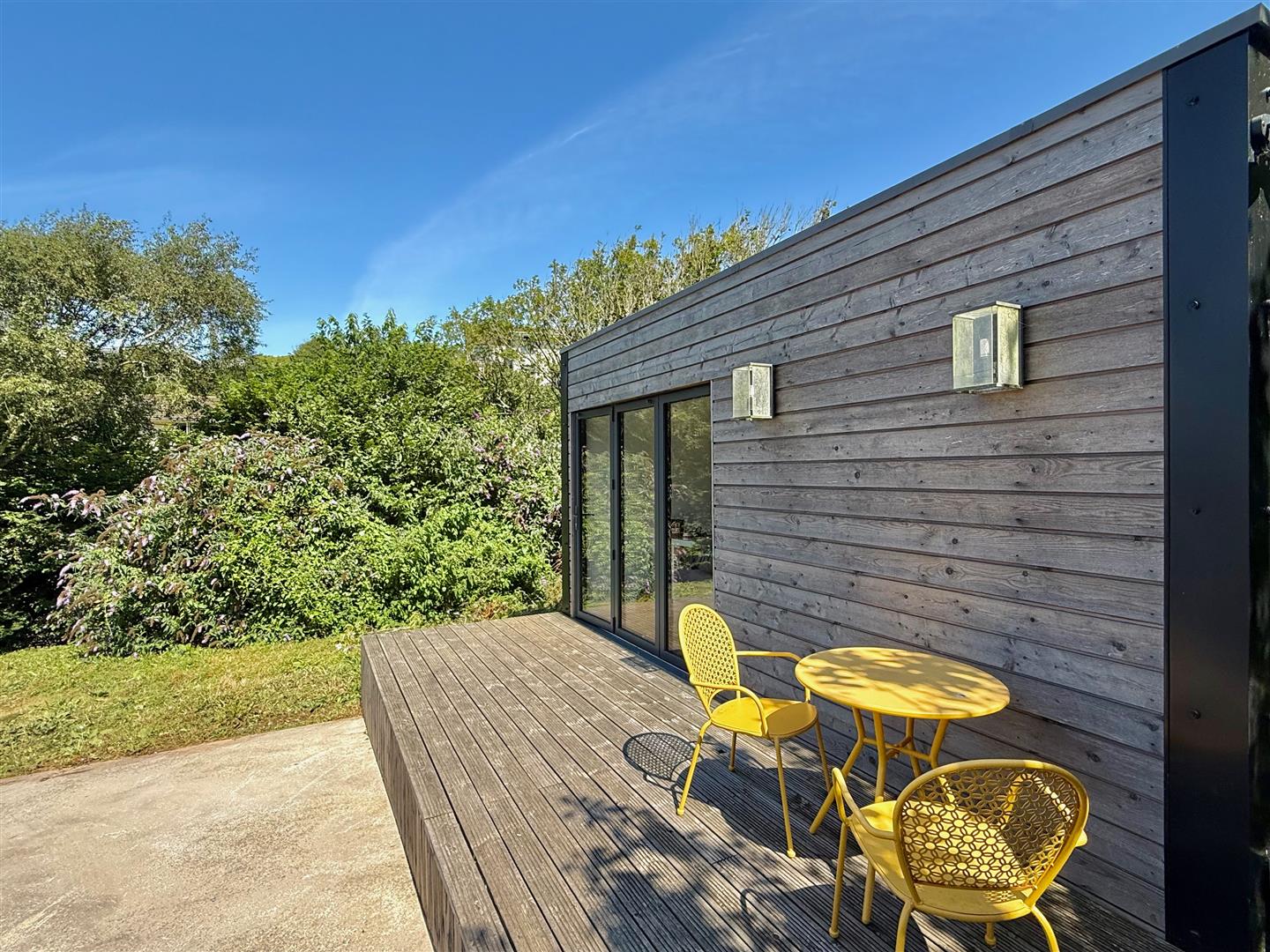 A detached building with bi-folding double-glazed doors plus a window to the side elevation.