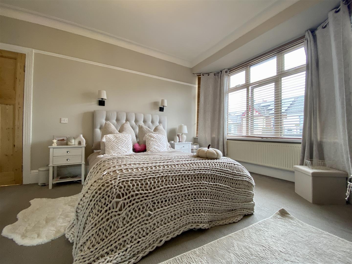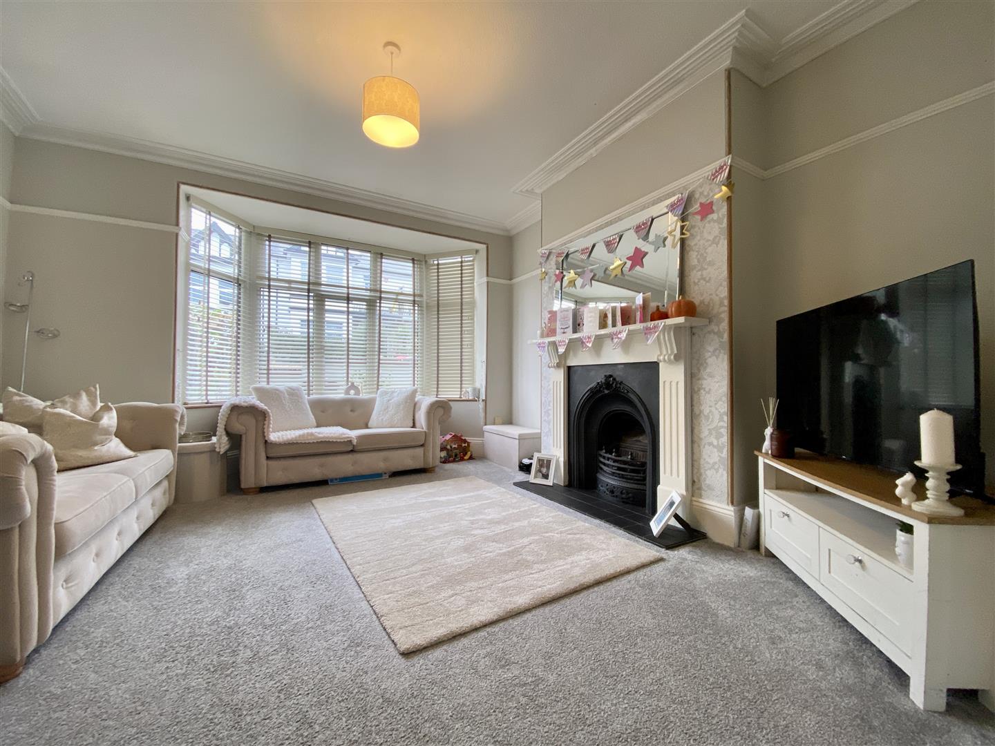 uPVC glazed bay window to the front elevation. Feature fireplace with wood mantel, surround and a decorative open grate. Door into;
