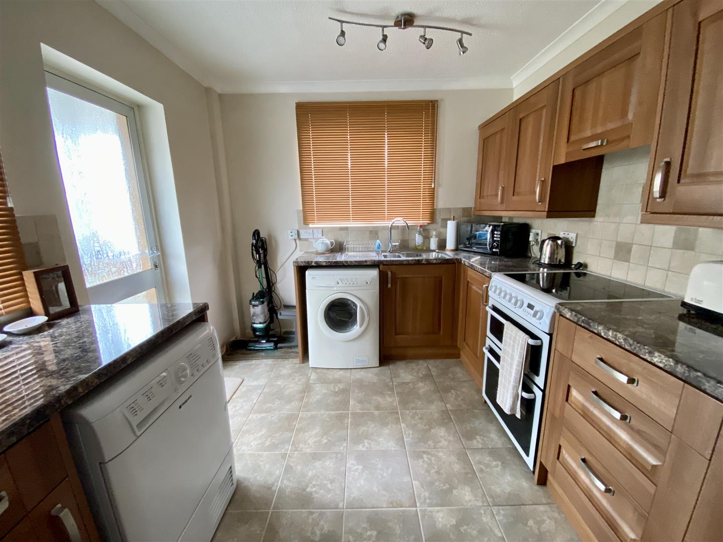 Matching base & wall mounted units to include spaces for a cooker, fridge/freezer, washing machine & tumble dryer. Roll edge laminate work surfaces have inset 1.5 bowl stainless steel sink unit with mixer tap & tiled splash-back. uPVC double-glazed window to the rear. Aluminium glazed door opens to the outside porch.