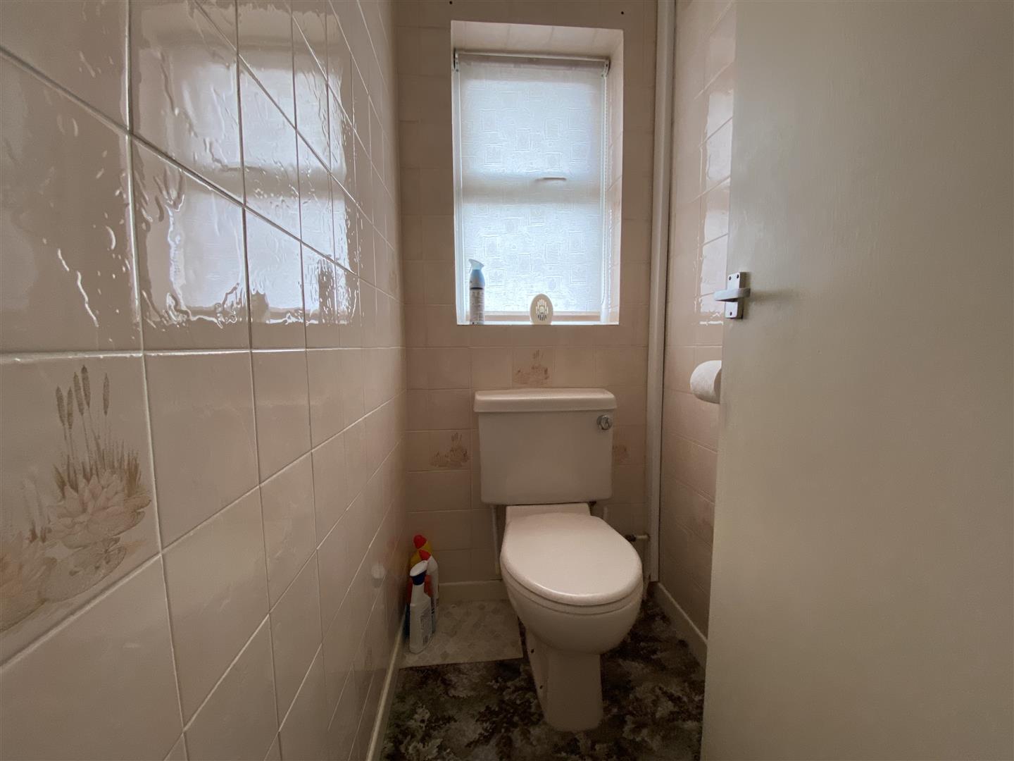 Close coupled wc. Frosted uPVC double-glazed window to the rear.