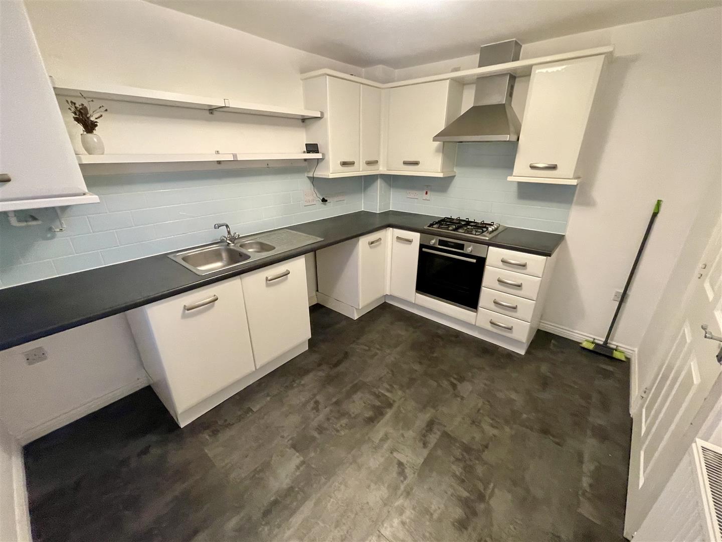 Ground floor accommodation comprising a hall, useful cloakroom/wc, fitted kitchen with integrated gas hob with an oven beneath, spaces suitable for other white goods and a generous-sized lounge/dining room with walk-in under-stairs storage cupboard with power laid on.