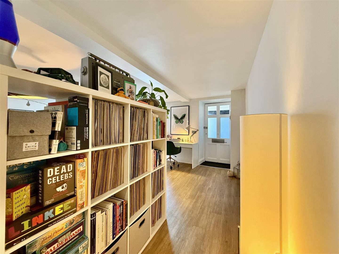 Front door opening into the open-plan living room and kitchen.