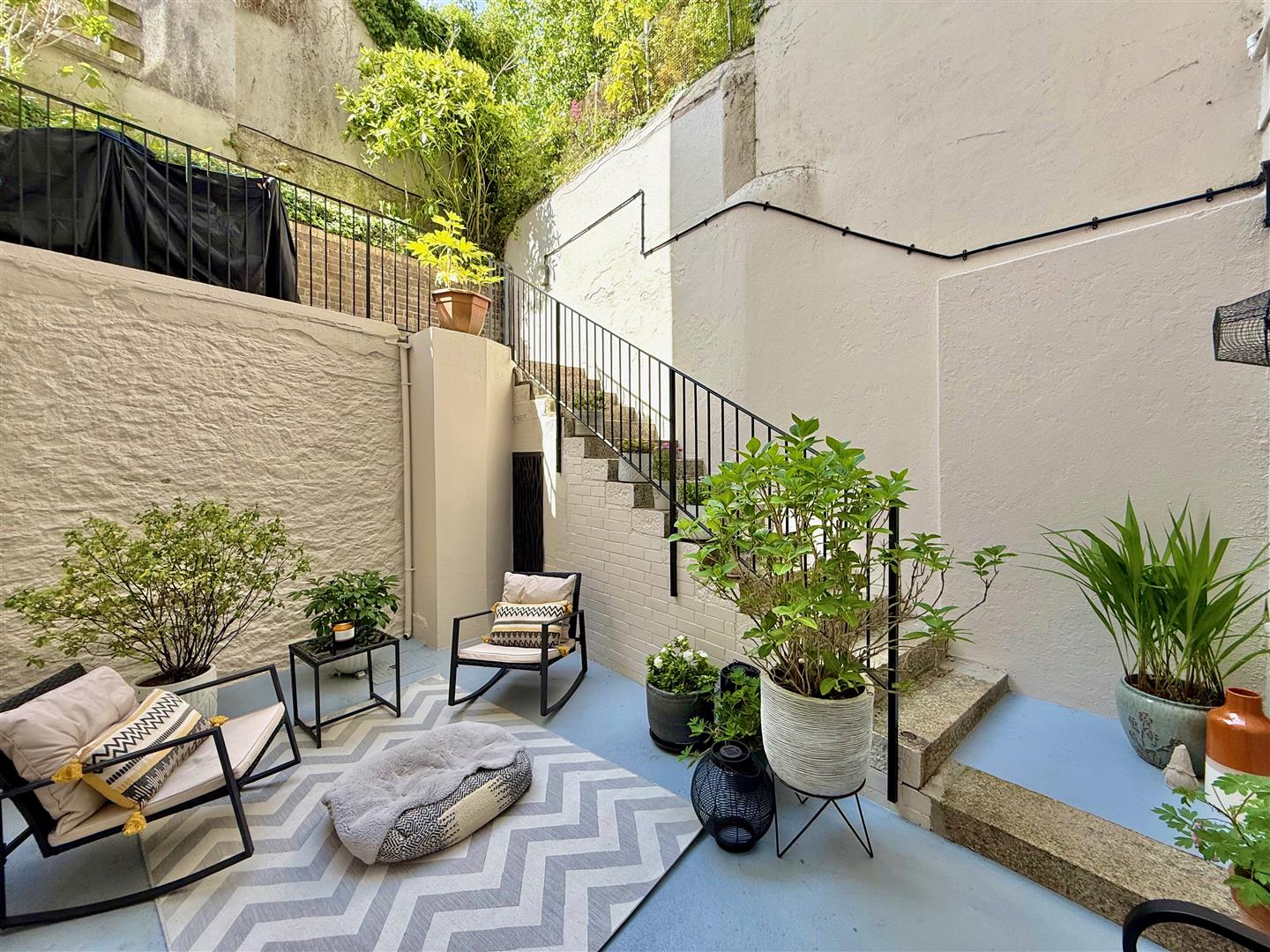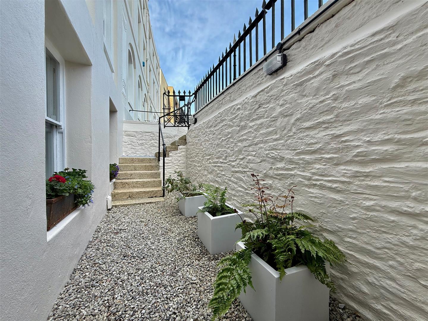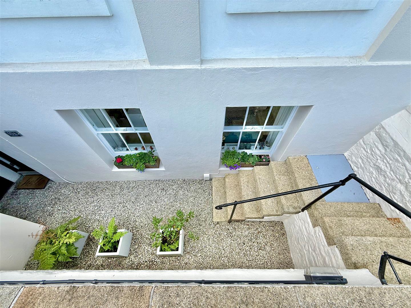 To the front of the property, directly outside, is a parking space. Granite steps lead down to the front courtyard which is laid to stone chippings. A covered area protects the main front entrance. 2 separate meter cupboards, one for the gas meter and one for the electric meter. The rear courtyard is an attractive enclosed courtyard benefitting from sunshine during the day and offering a high degree of privacy and seclusion. Granite steps provide rear access. Under-stairs storage area beneath the steps. Outside light.