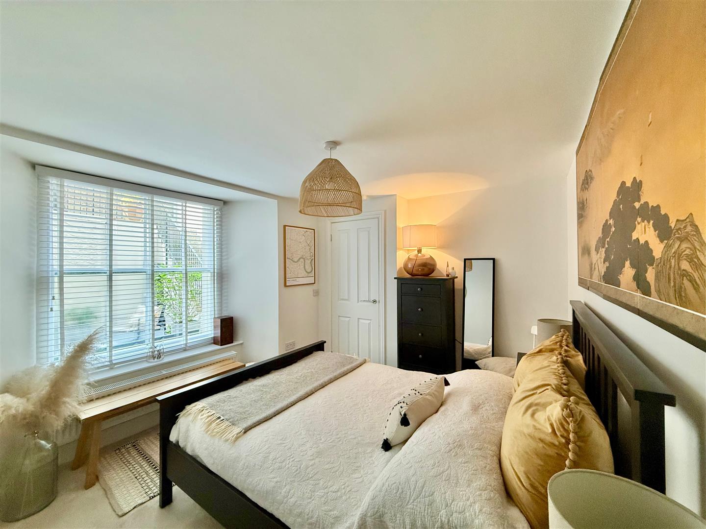 A spacious double bedroom. Recessed closet. Sash window with a fitted blind to the side elevation overlooking the courtyard. Doorway opening into the courtyard.