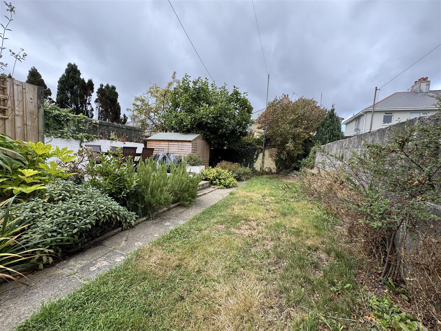 To the rear an enclosed garden which consists of a composite decked seating area overlooking the main section of garden. Steps lead down from the composite decked area to a paved path, which bisects the garden. A door leads to a purpose built storage shed which has plumbing, butler sink & electricity. A gate gives access to the shared driveway. A section of lawn to one side with a further concrete patio area. Timber shed standing towards the rear boundary.