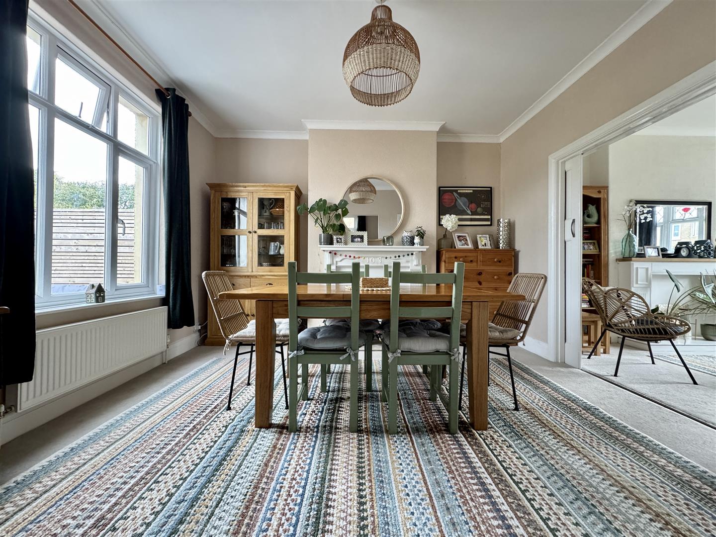Feature fireplace with wood mantle & surround. Covings. Ample space for a dining table. uPVC double-glazed window looking out to the rear garden. A square arch opens into the snug area.