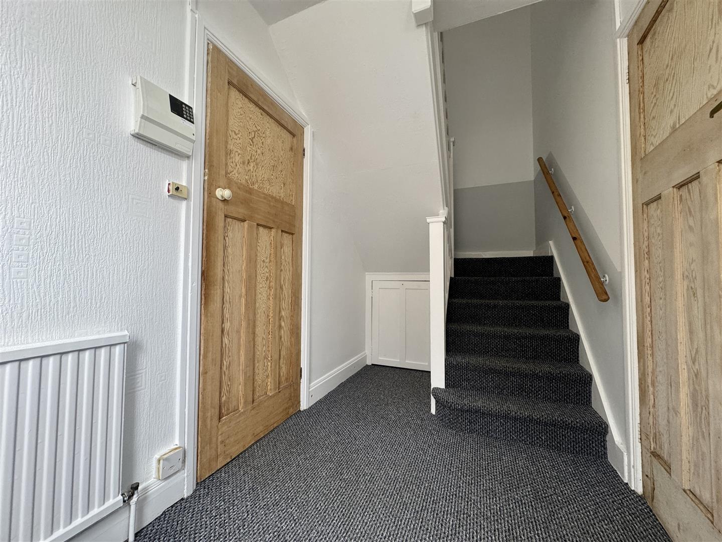 Obscured uPVC double-glazed window to the side. Staircase rising to the first floor landing. Under-stairs storage cupboards. Doors leading to the lounge & kitchen/diner.