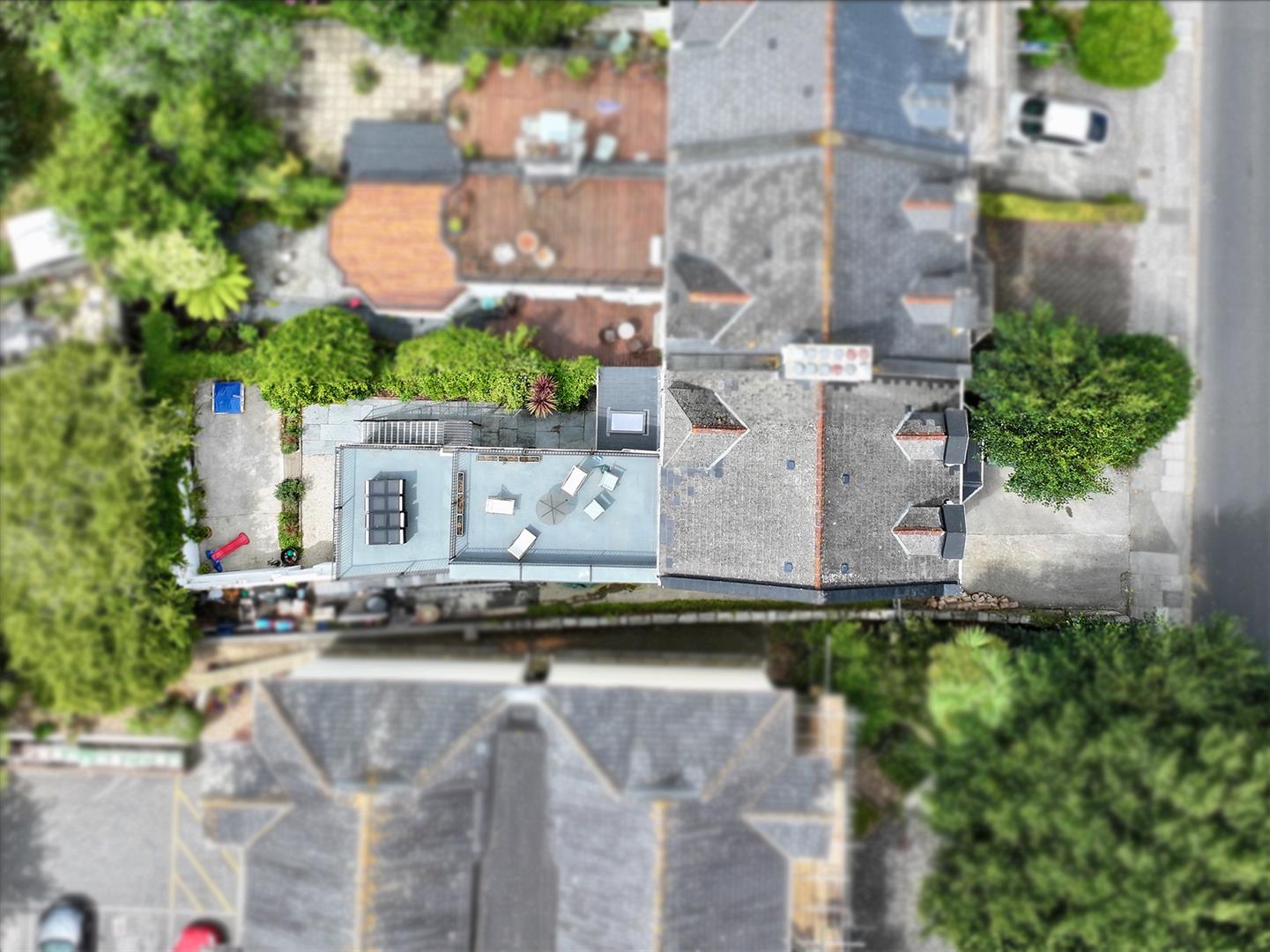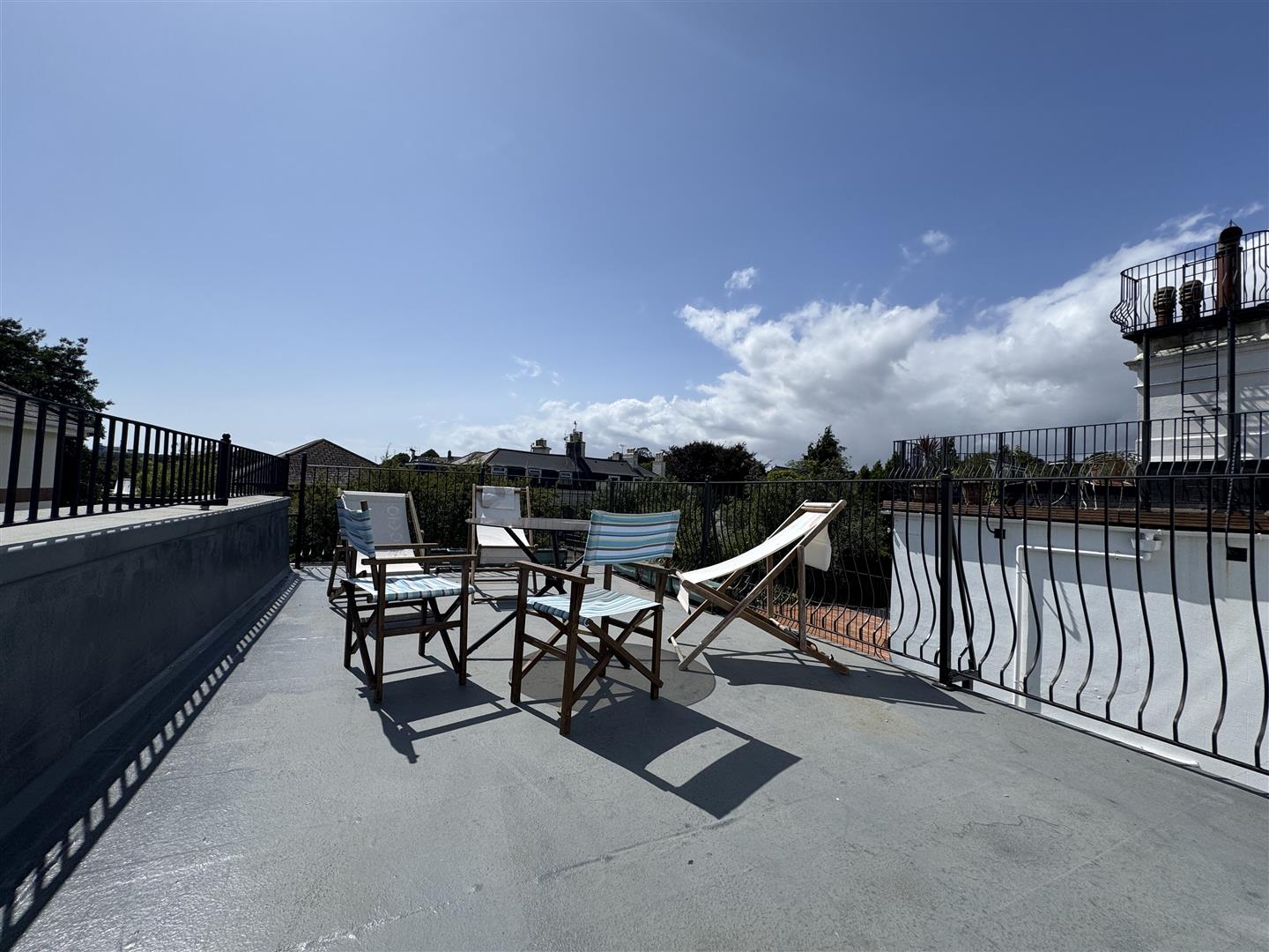Roof terrace. Staircase leads to the second floor where there are 2 bedrooms, one of which is currently being used as a study & shower room.
