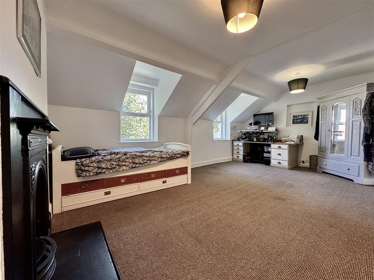 Exposed wooden floorboards which have been white washed. uPVC double-glazed window to the rear. High level door opens to the study/bedroom 4.