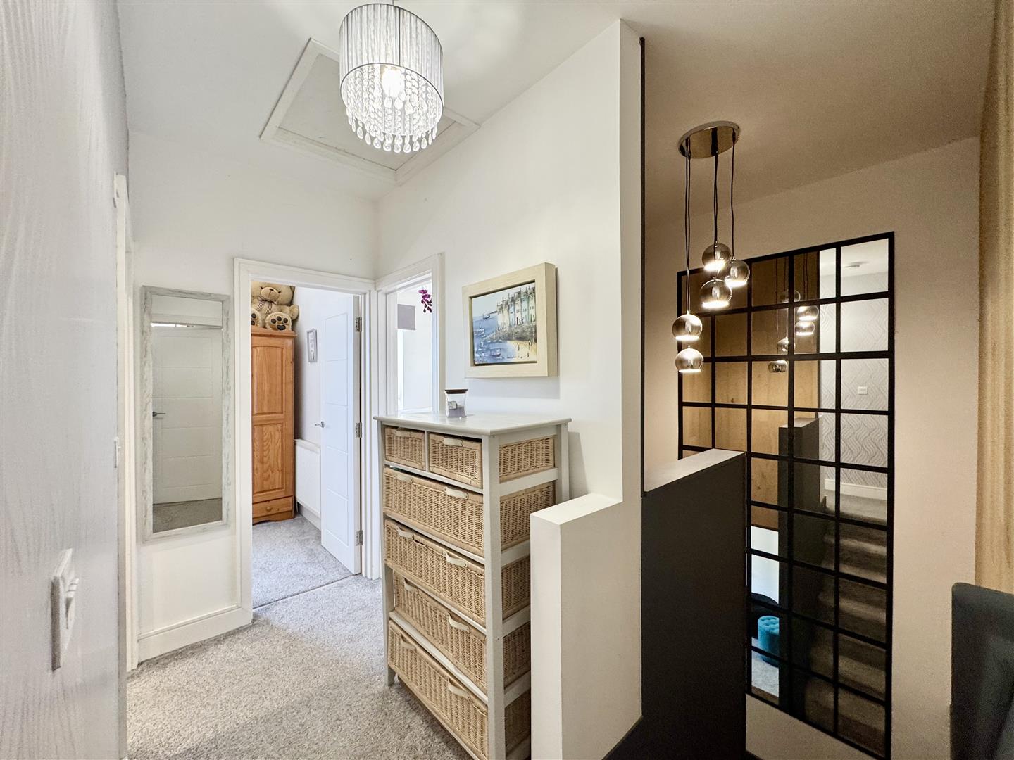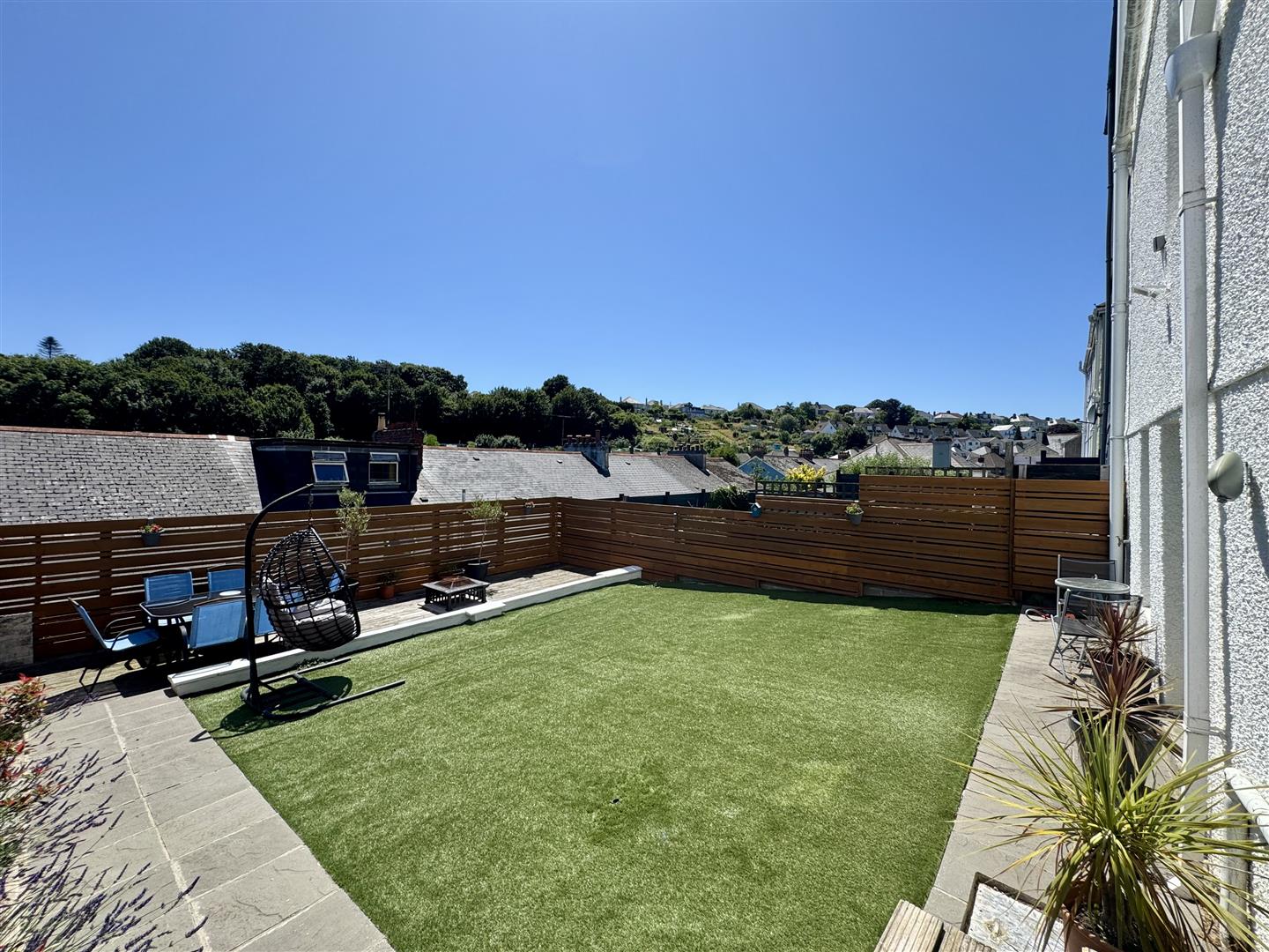 To the front a wide parking bay with space for 3 vehicles side by side. Wide side access with a stepped area and storage space leading to the rear garden. The rear garden is near level and laid to artificial lawn and a wide decked patio. The garden is southerly-facing and ideal for al fresco entertaining, enjoying day long sunshine.
