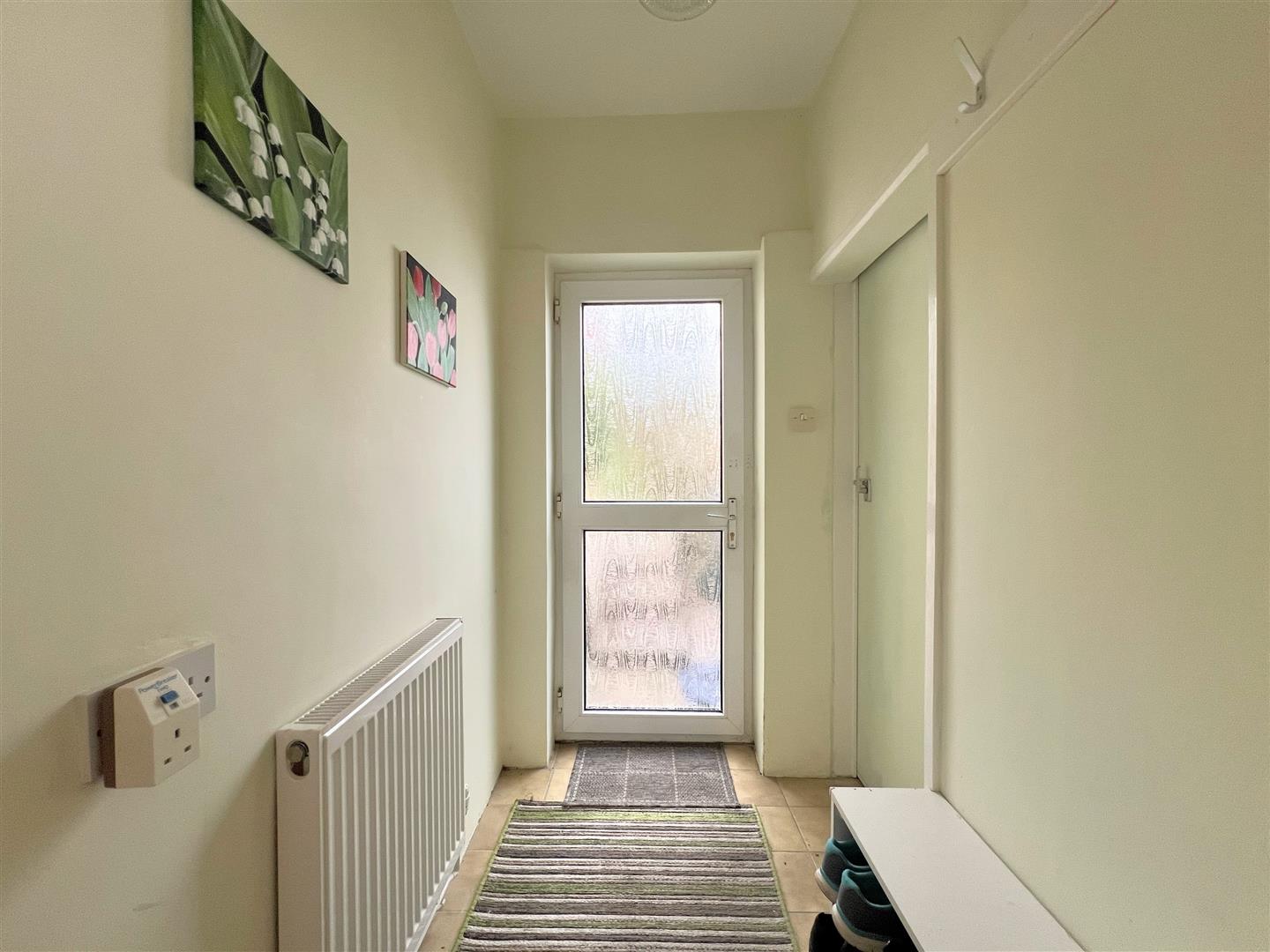 Sliding door opening to the downstairs cloakroom. uPVC double-glazed door, with inset obscured glass, opening to the rear garden. Hatch providing access to a small loft.