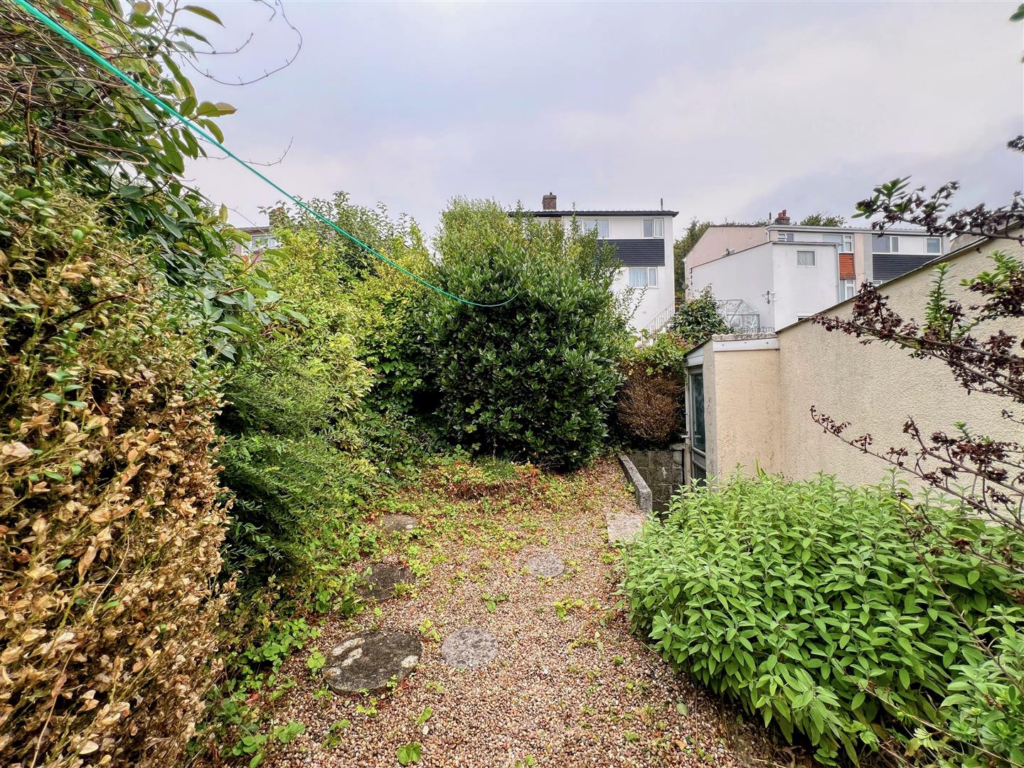 The property is approached via a brick-paved hard-stand, with bordering flowerbeds and bushes and steps leading up to the front porch. Down the side of the house there is a shared driveway leading to the garage. From the driveway a metal gate opens to the rear garden which includes a patio area and an area laid to stone chippings, bordered by mature trees and bushes.