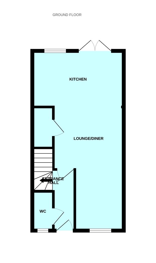 A generous open-plan ground floor room which is dual aspect with windows with fitted blinds to the front and rear elevations. French doors to the rear opening onto the west-facing garden. Under-stairs storage cupboard. Tiled floor. Ample space for seating and dining. The kitchen area, which is situated to the rear of the room, has a range of base and wall-mounted cabinets with matching fascias, work surfaces and splash-backs. Inset single drainer sink unit. Built-in oven. Stainless-steel gas hob with a glass splash-back and a cooker hood above. Integral dishwasher. Space for free-standing fridge-freezer. Wall-mounted gas boiler.
