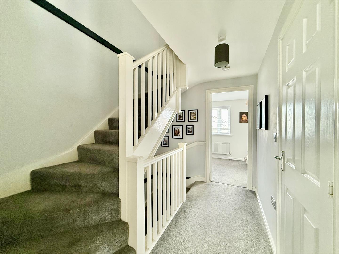 Providing access to the remaining accommodation. Loft hatch. Over-stairs cupboard fitted with a hanging rail and shelving.