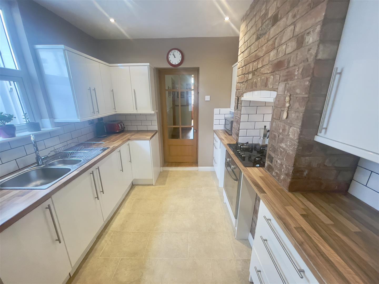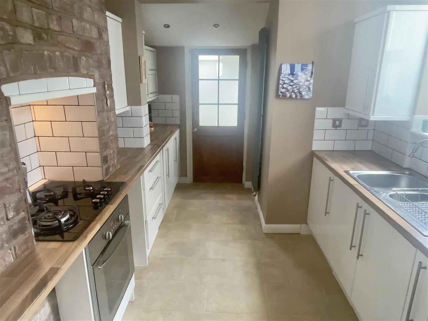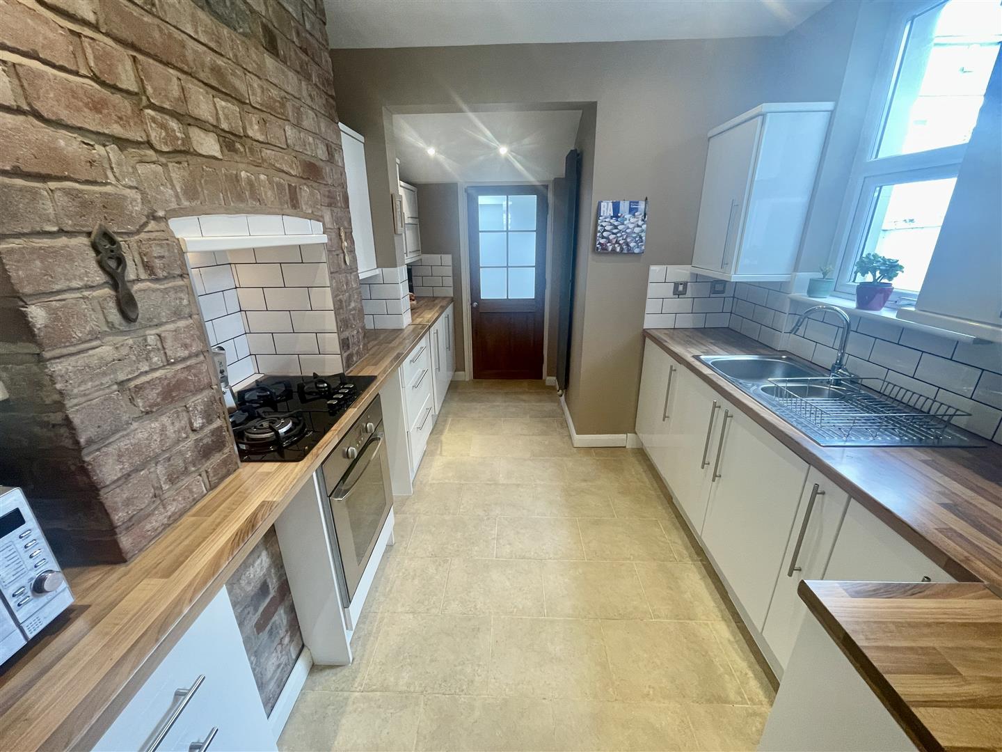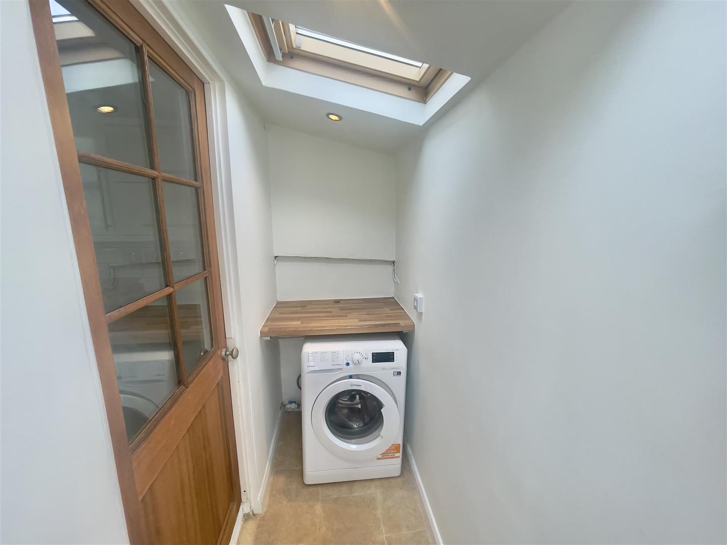 Two velux double-glazed roof lights. Space & plumbing suitable for washing machine. Door to the rear courtyard & further door into;