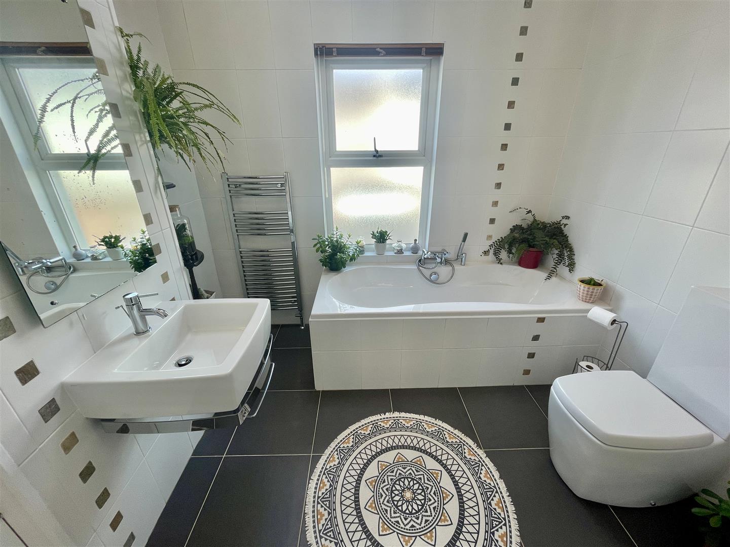 A most well presented Edwardian built (circa 1911) mid terraced house. Extensively upgraded & improved, characterful with period features & a host of modern conveniences. Central heating with Worcester boiler & uPVC double-glazing. Attractive & well stocked front garden with a path leading up to the timber front door. An entrance lobby opening into the hall with useful under-stairs storage cupboards & stairs rising to the first floor. A generous-sized lounge with box bay window & focal feature fireplace, impressive white marble surround & cast iron fireback. Timber floorboards which continue through a wide archway into the good-sized dining room overlooking the rear courtyard. A quality modern fitted integrated kitchen with work surfaces to both sides, 1.5 bowl sink unit with mixer tap & metro tiled splash-backs. There are plumbing & electrics for a dishwasher. On the opposite side a brick arch with Whirlpool 4 ring gas hob with illuminated extractor hood over & Indesit electric oven under & a separate fridge & freezer. A useful utility room/rear lobby with space & plumbing for a washing machine. A downstairs cloakroom/wc with a white wc & wash hand basin with wall mounted Worcester boiler servicing the central heating & domestic hot water.