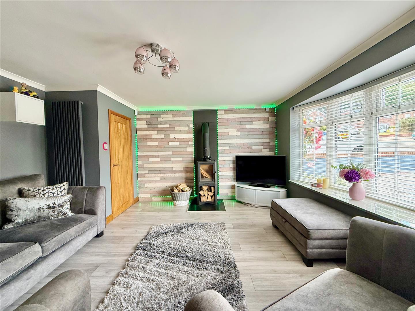 Window with fitted blind to the front elevation. Wood burner set onto a slate hearth. Feature panelling to one wall. Laminate flooring. LED lighting.