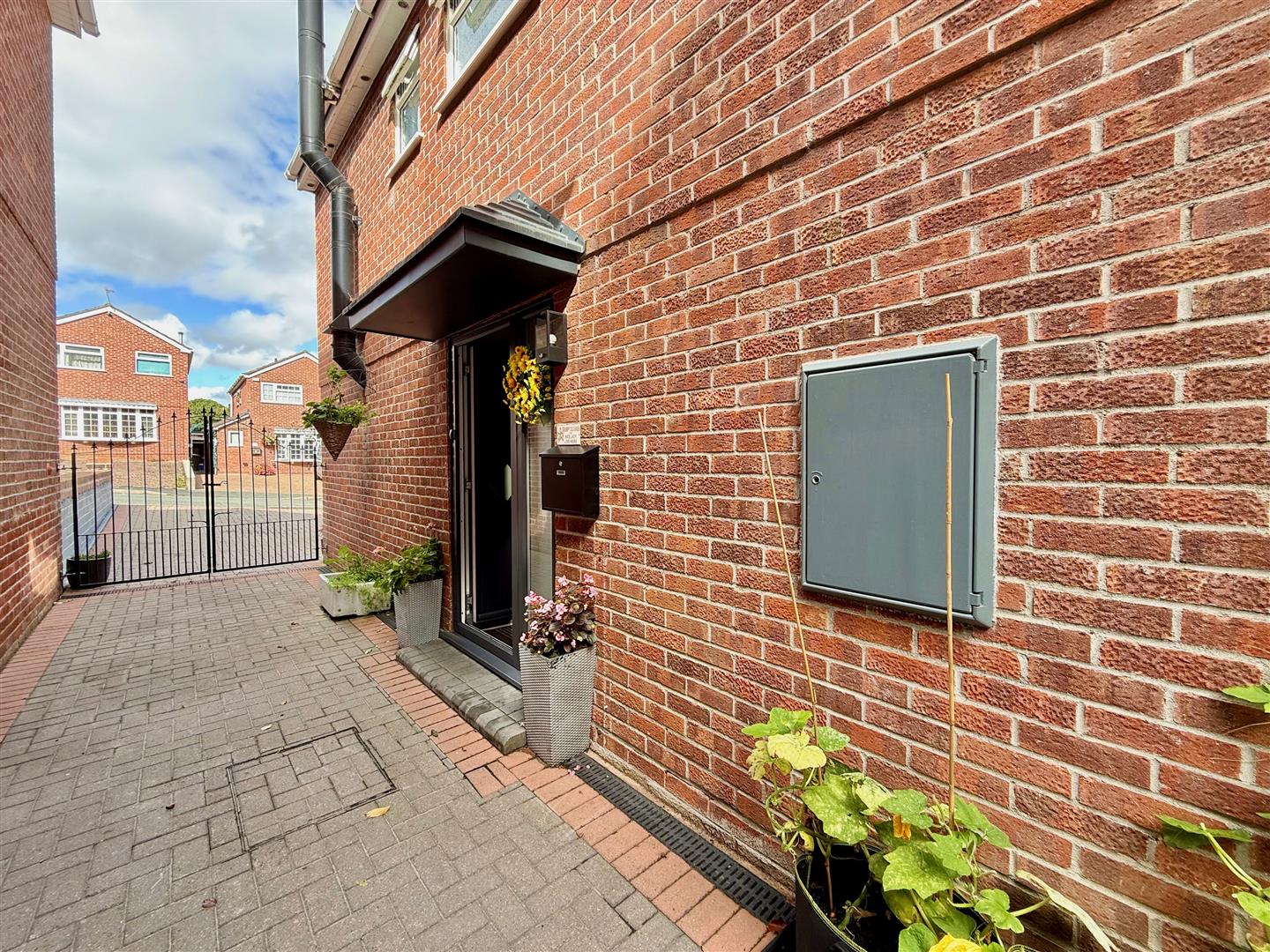 Providing access to the ground floor accommodation. Staircase ascending to the first floor. Feature wall-mounted vertical radiator with mirror.