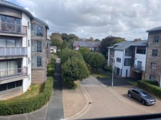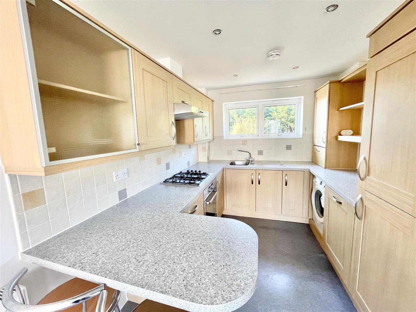A spacious open-plan room providing a seating and dining area. Full-width double-glazed window with fitted vertical blinds and door opening onto the balcony (11' 11" x 4' 2") providing a very pleasant outlook. The kitchen area is fitted with a range of modern base and wall-mounted cabinets with matching fascias, work surfaces and tiled splash-backs. Built-in stainless-steel oven with a 4-burner gas hob and cooker hood above. Stainless-steel single-drainer sink unit. Space and plumbing for washing machine. Built-in dishwasher. Built-in fridge and freezer. Breakfast bar. Spotlighting. Double-glazed window to the rear elevation providing views toward Plymouth Sound.