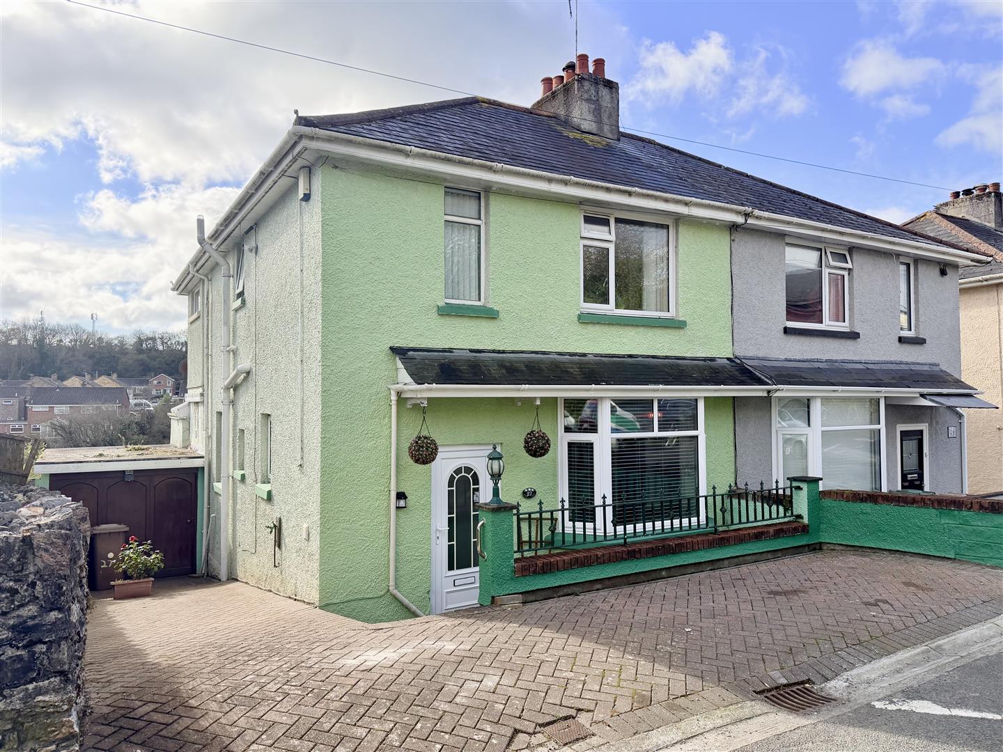 To the front, is a brick-paved parking area together with a matching brick-paved driveway running down the side of the property to the garage. Outside tap. A matching brick-paved path runs along the front elevation. The large rear garden has a substantial decking area together with areas laid to paving beyond which the garden is laid to lawn together with shrubs and a variety of fruit trees. There is a timber shed, sub-floor storage and lovely views.