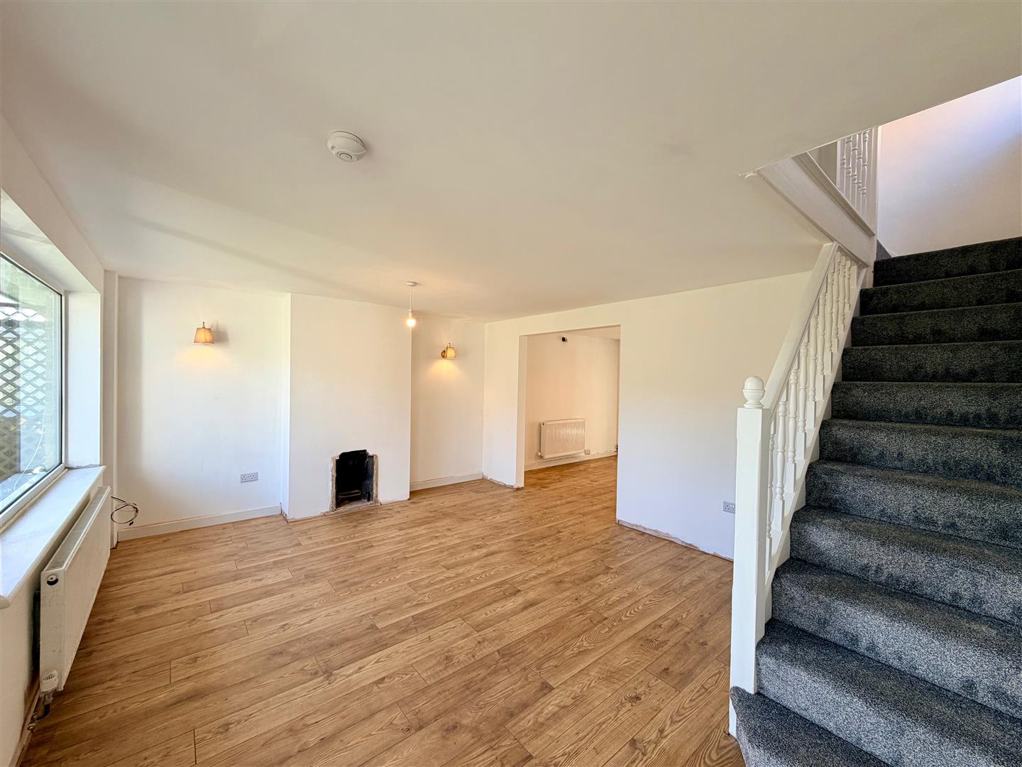Staircase ascending to the first floor. Under-stairs cupboard. Chimney breast. Window to the front elevation. Open-plan access through into the kitchen/dining room.