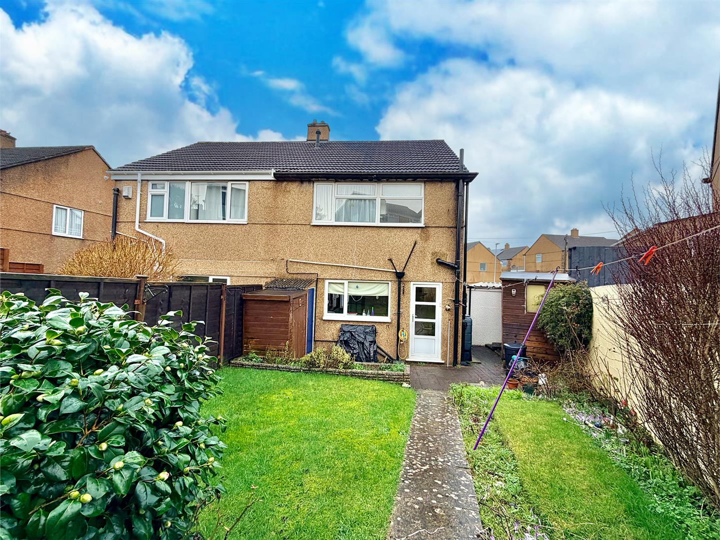 To the front, a brick-paved driveway provides access and off-road parking. A path leads between the house and garage to a gate providing access to the rear garden. The front garden is laid to lawn with bordering shrub and flower beds. The rear garden has areas laid to lawn. shrub and flower beds and a brick-paved patio adjacent to the rear of the property. There is an outside tap, 2 timber sheds and an outside store.