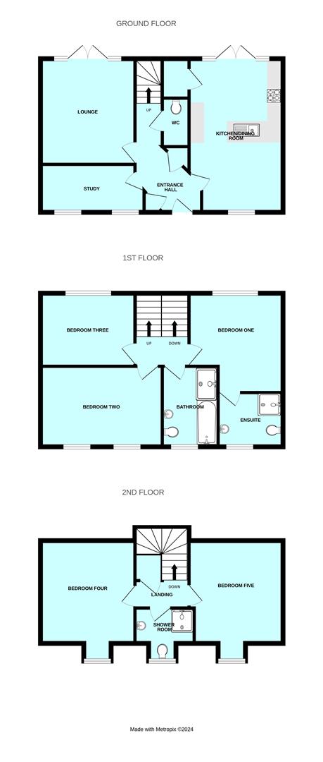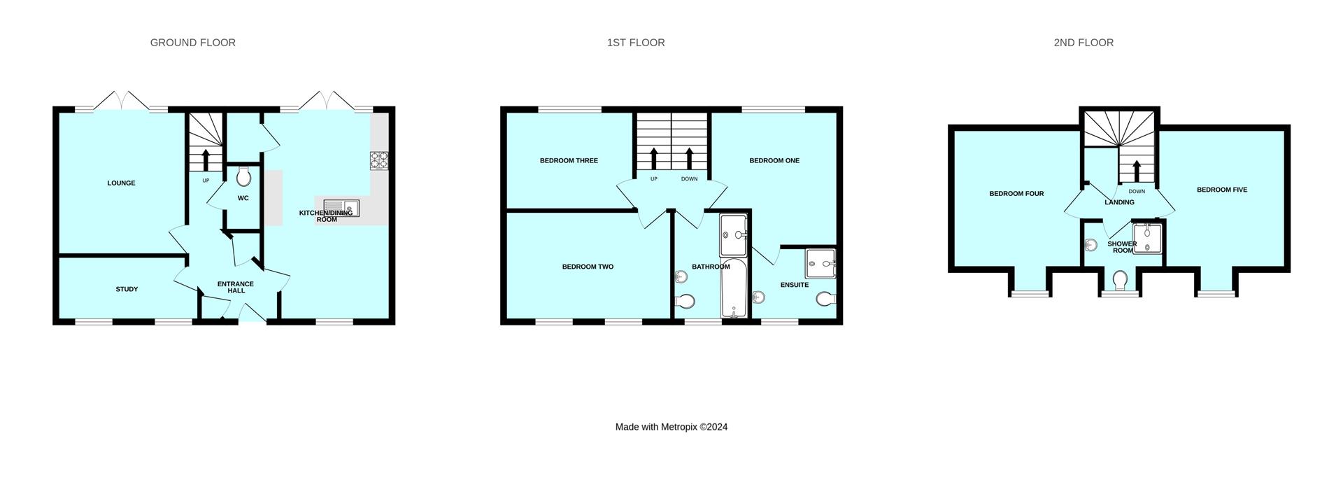 Comprising a tiled shower with a bi-folding glass screen, pedestal basin with matching splash-back and wc. Matching tiled cill. Window to the front elevation with lovely views.