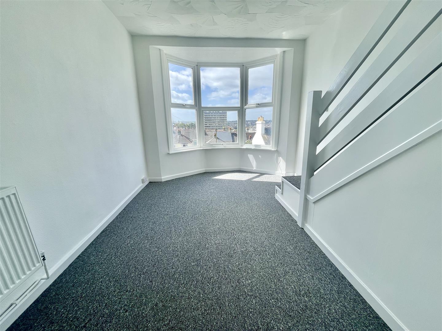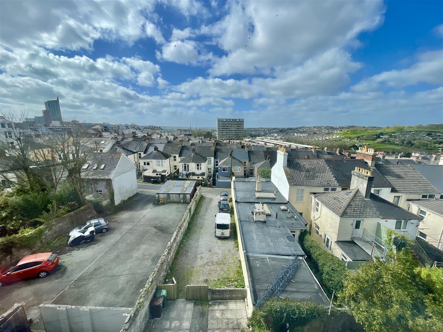 Number 6 located on 2 upper levels enjoying far reaching views looking across the city to Cornwall in the distance. A maisonette with entrance level comprising a fitted kitchen with work surfaces, Beko 4 ring gas hob with Beko oven under, wall mounted Worcester gas fired boiler which services the central heating & domestic hot water. A spacious lounge/dining room with wide bay window & far reaching views. Staircase rises to the upper level. Here a landing giving access to a generous-sized double bedroom with far reaching views & a new fitted bathroom with bath, Triton electric shower over, wc & wash hand basin.