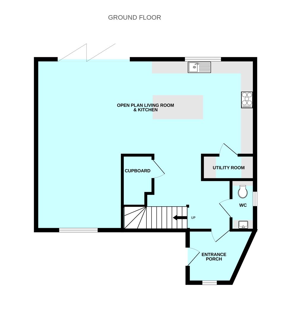 Providing access to the first floor via a staircase. Open-plan access through into the living space. Under-stairs cupboard with lighting housing the solar panel inverter together with the battery.